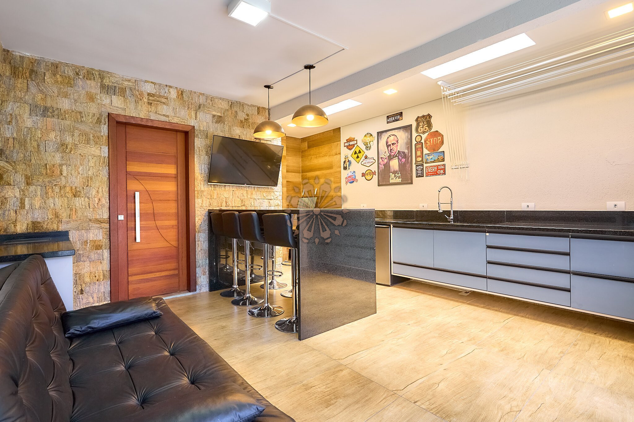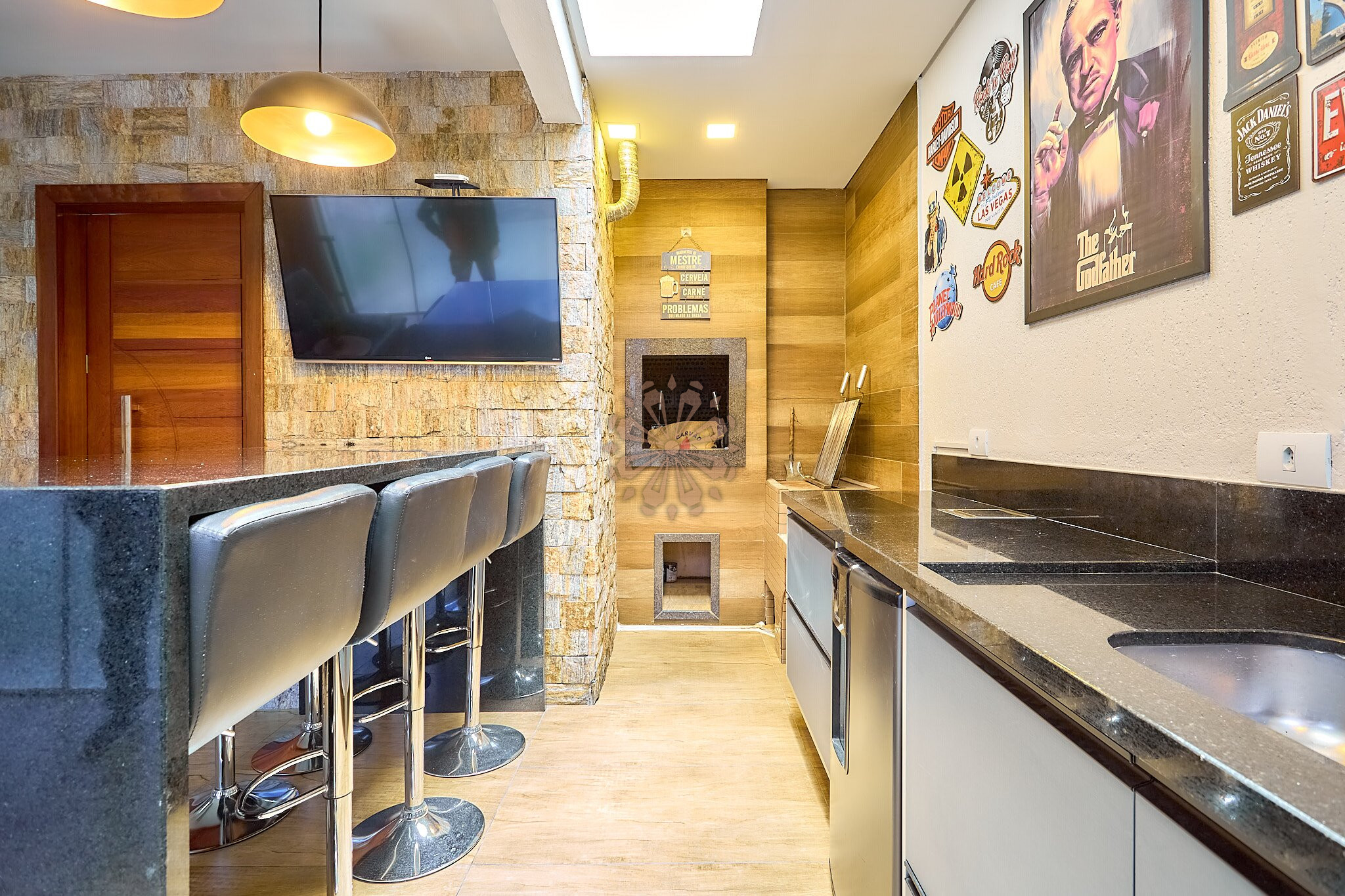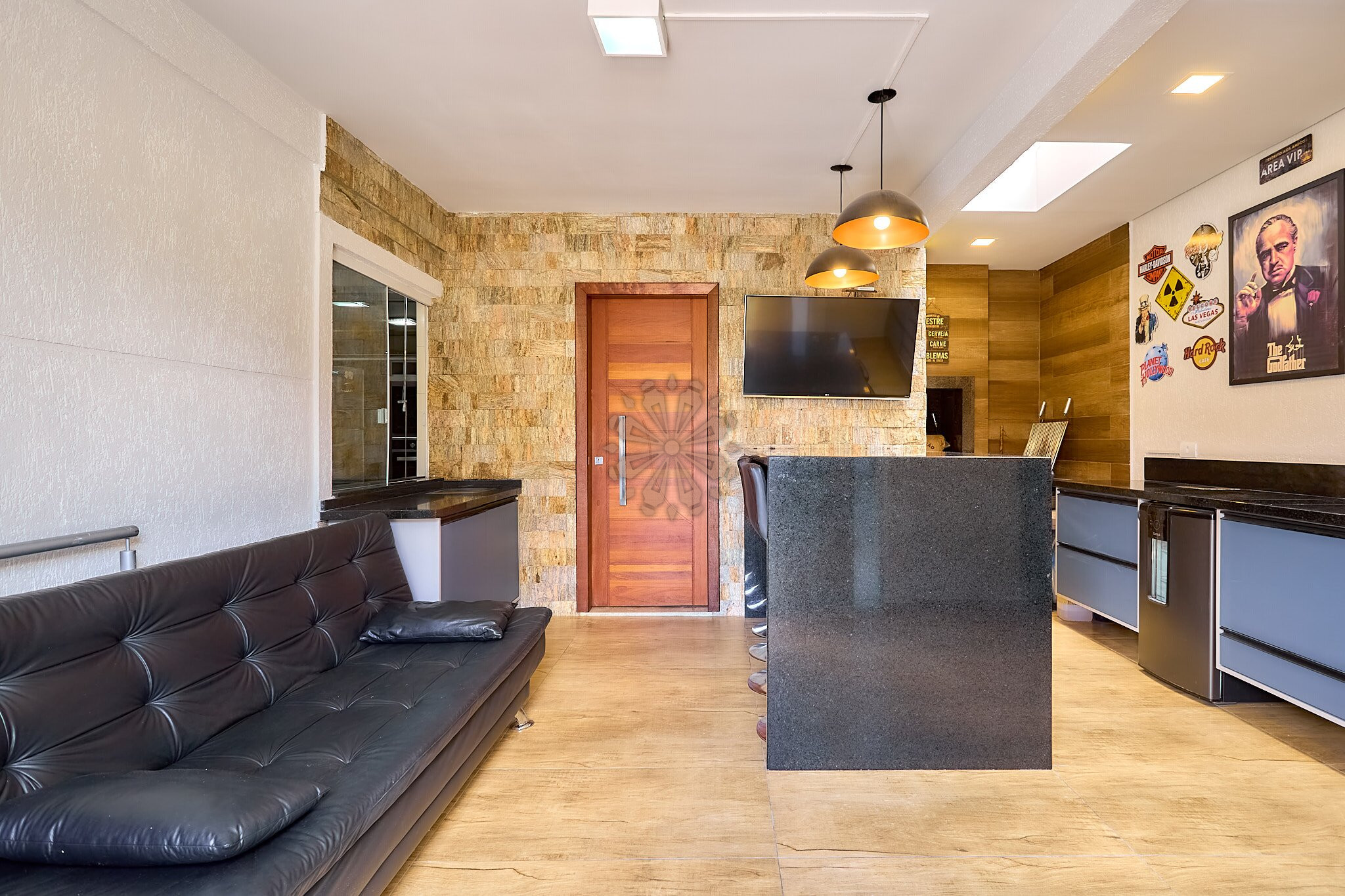 Na área térrea há um espaço gourmet integrado, com sofá, banquetas, TV, frigobar, churrasqueira e armários planejados, ideal para receber amigos e família. O condomínio é completo e oferece salão de festas equipado, quadra poliesportiva, espaço pet, parquinho infantil e portaria, garantindo conforto e segurança para toda a família.