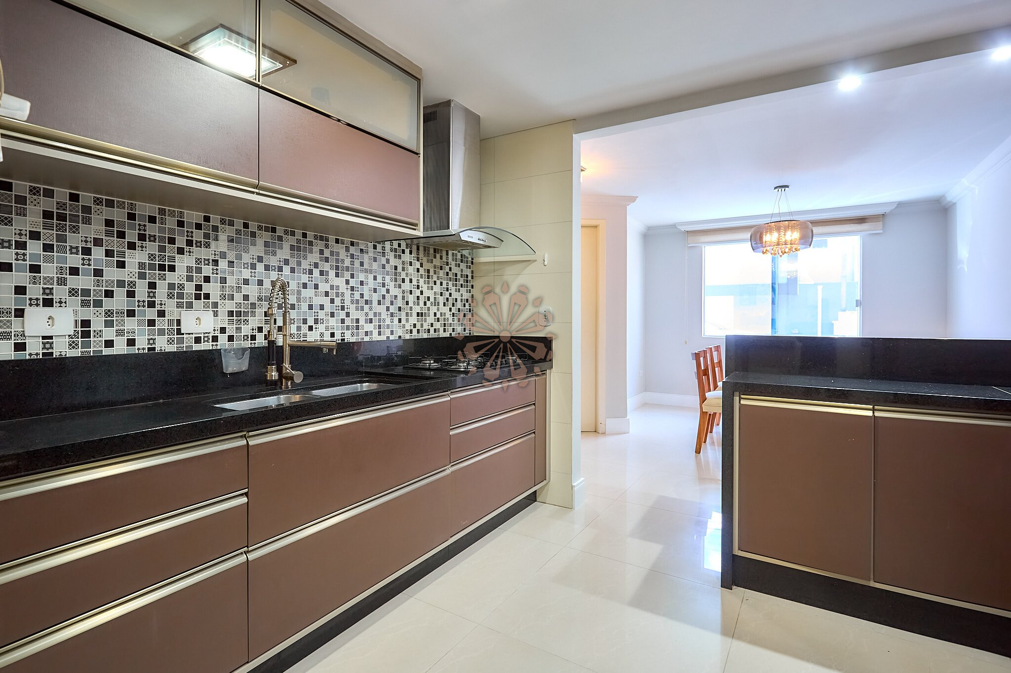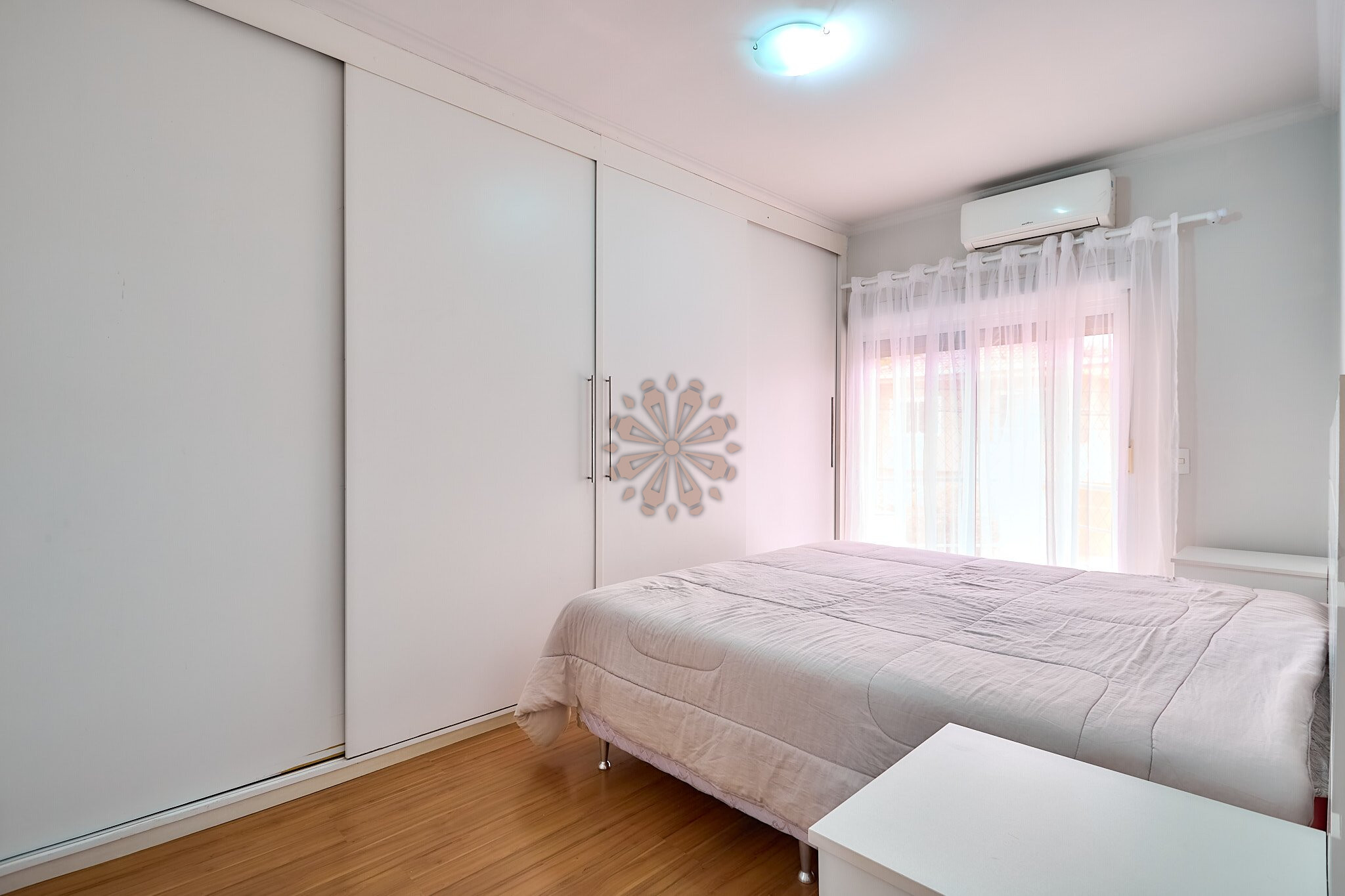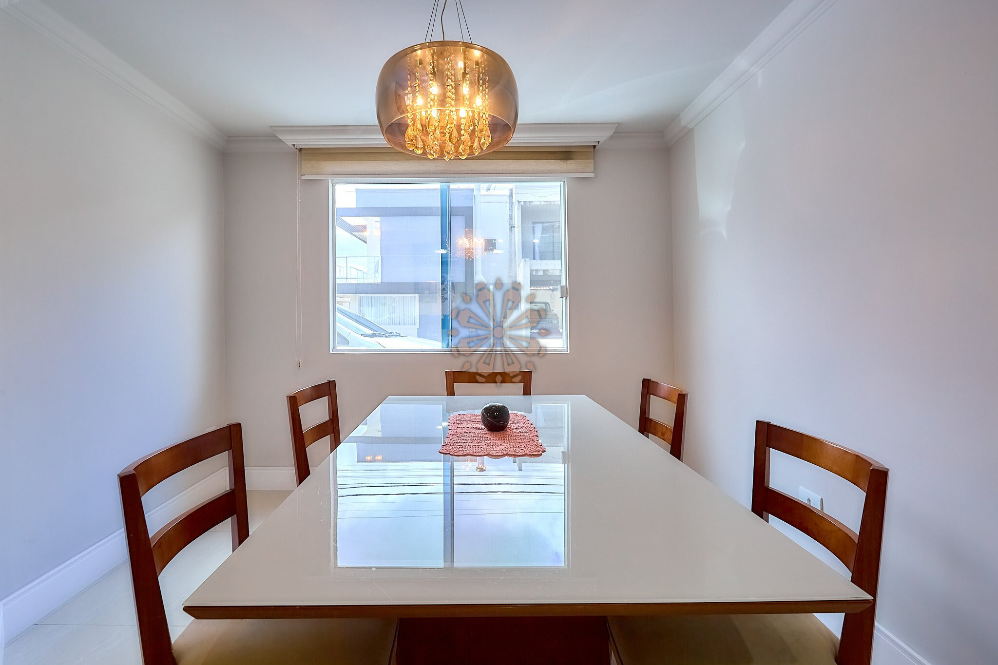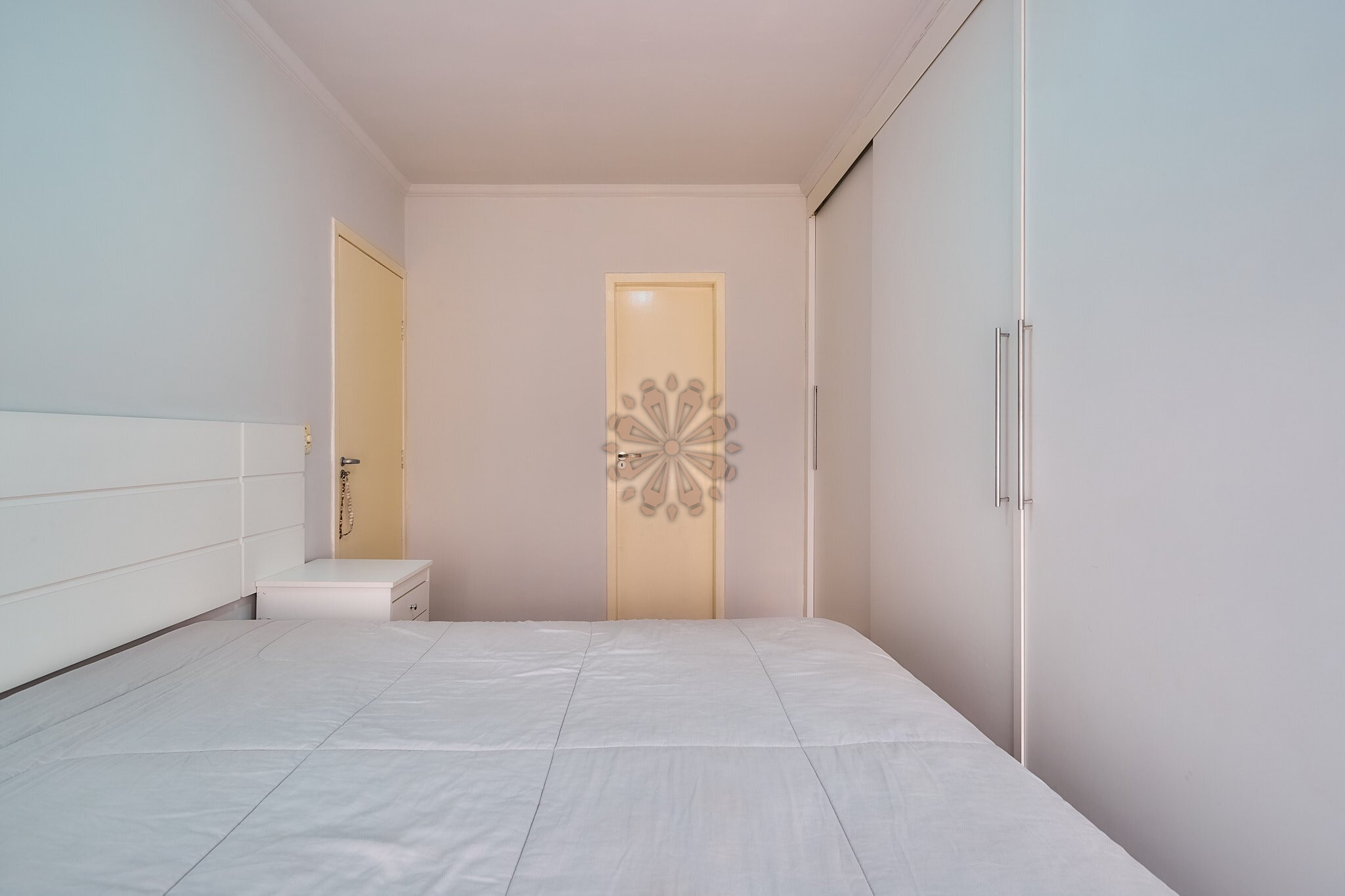 O espaço interno é bem distribuído, com sala de estar equipada com sofá, hack e televisão, sala de jantar com mesa para 5 lugares e balcão com banquetas, cozinha com armários planejados, coifa, geladeira, micro-ondas e forno. Possui lavabo e lavanderia equipada com máquina de lavar e móveis planejados. As sacadas contam com tela de proteção para pets e crianças e portõezinhos de segurança nas escadas.