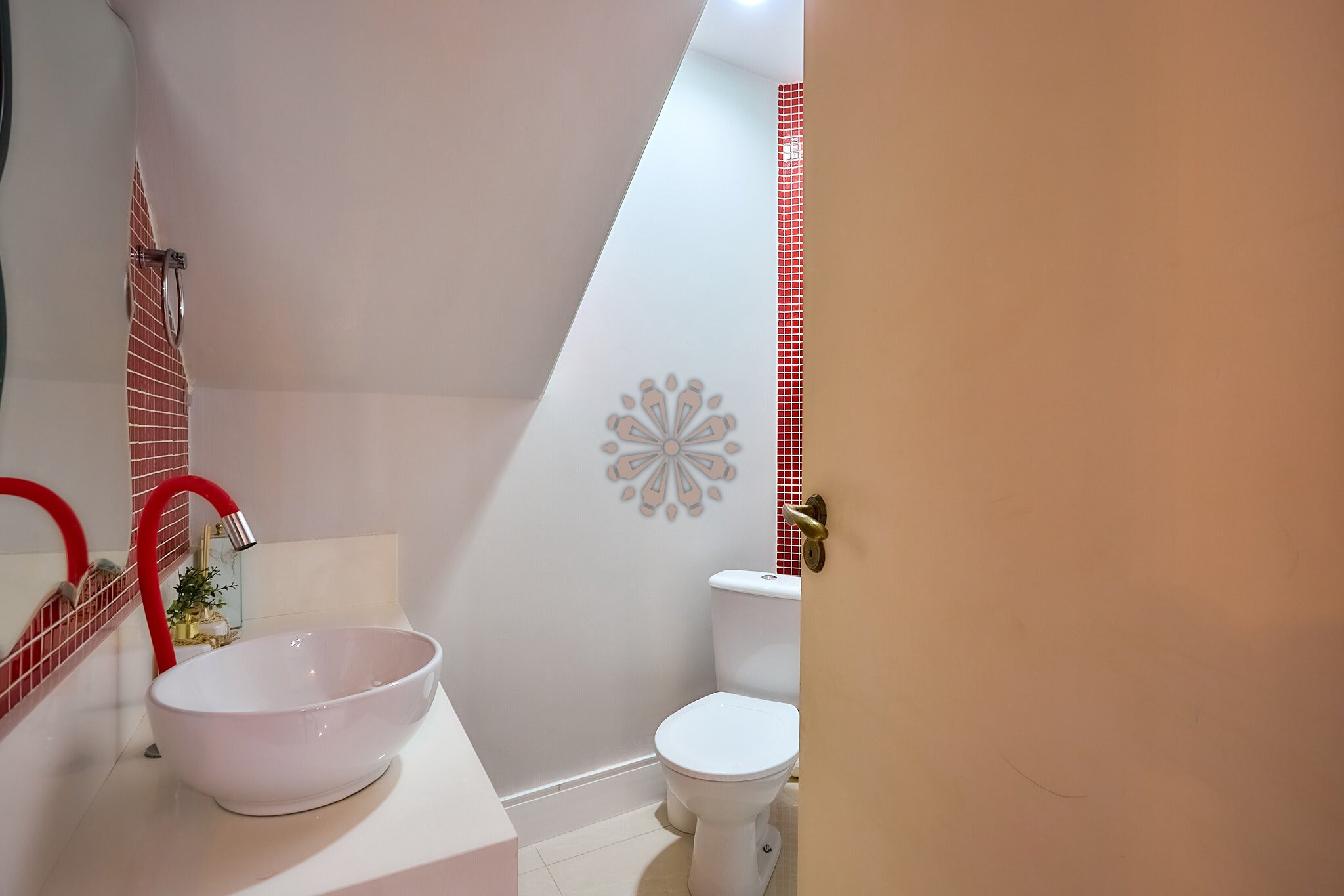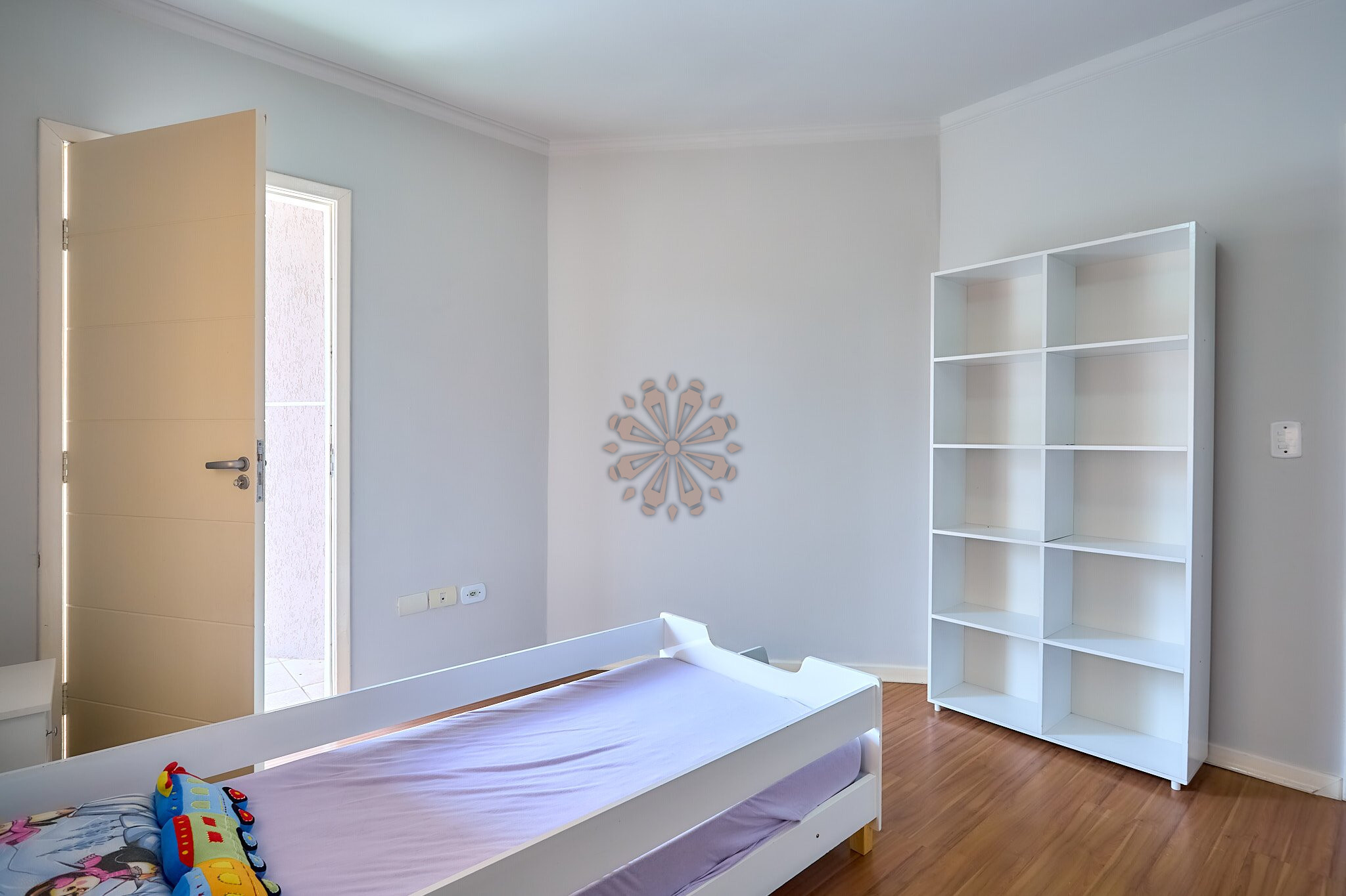 Na área íntima, o quarto 1 possui guarda-roupa, o quarto 2 está montado como infantil com cama, prateleira e guarda-roupa, e a suíte conta com armário, cama, criados-mudos, ar-condicionado e banheiro com banheira e armário planejado. O imóvel ainda oferece um ático versátil, que pode ser utilizado como quarto adicional, escritório ou espaço de lazer, contando com banheiro completo com chuveiro.