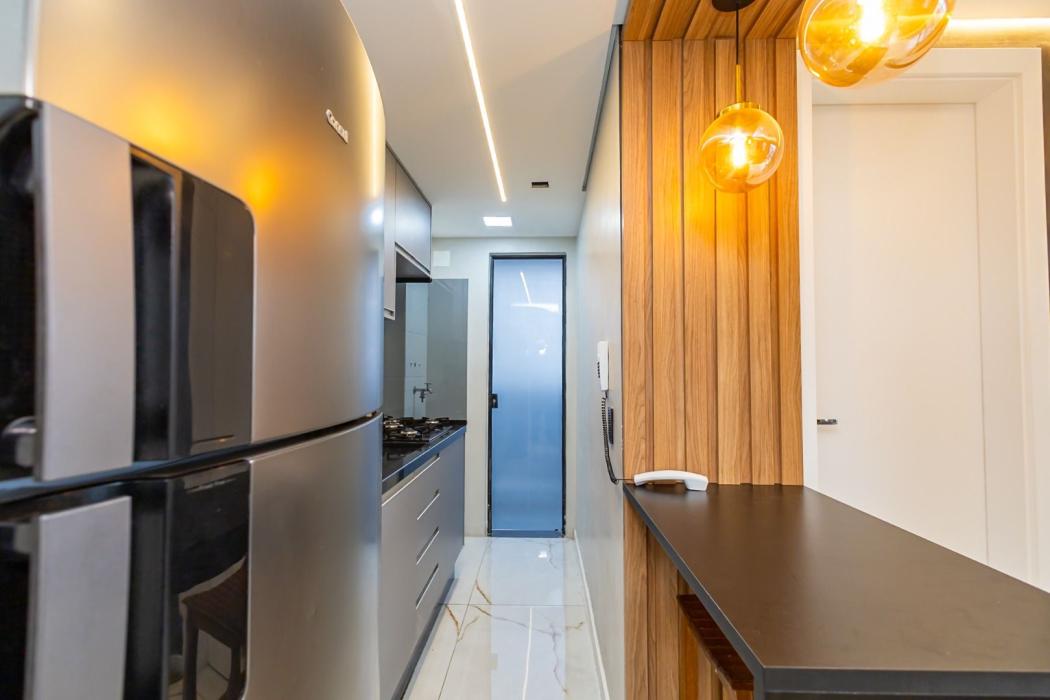 Apartamento com cozinha planejada moderna e um projeto de iluminação incrível, que valoriza cada ambiente. 2 sacadas (sala e cozinha) circulação natural de ventilação e claridade solar.