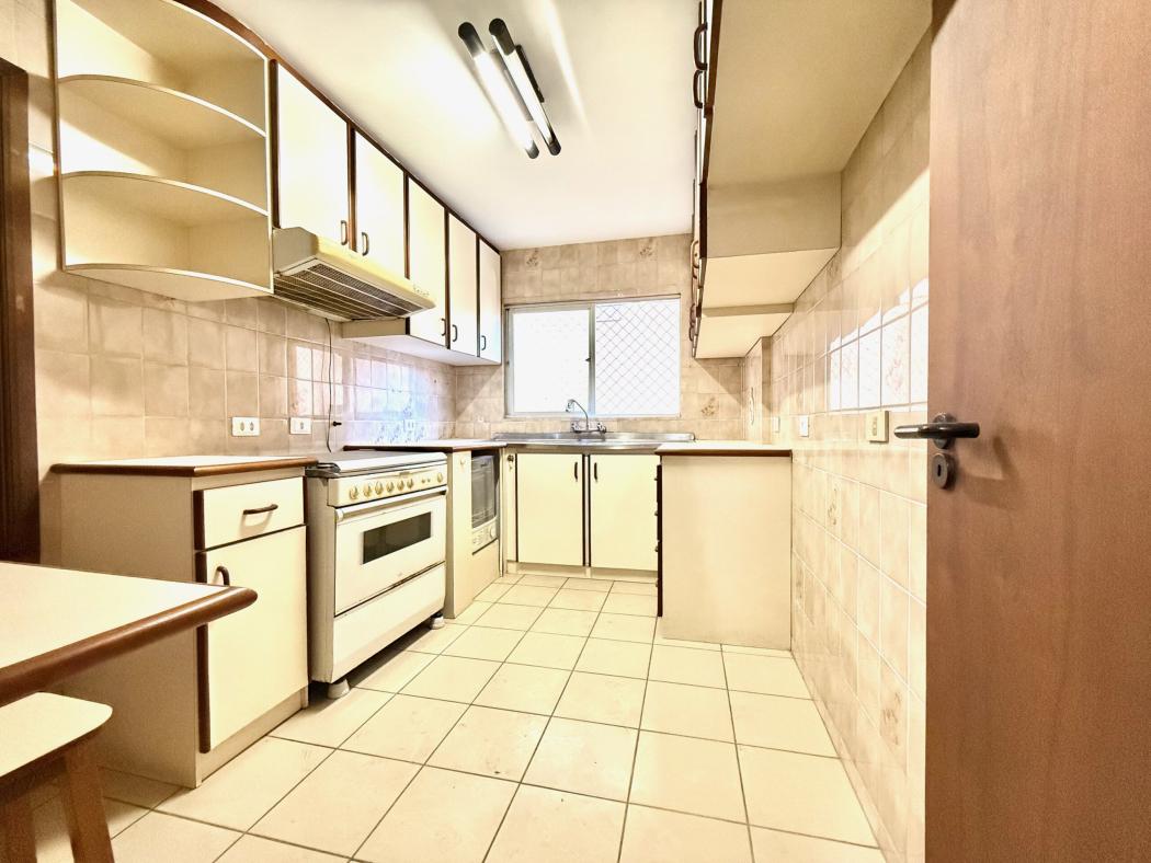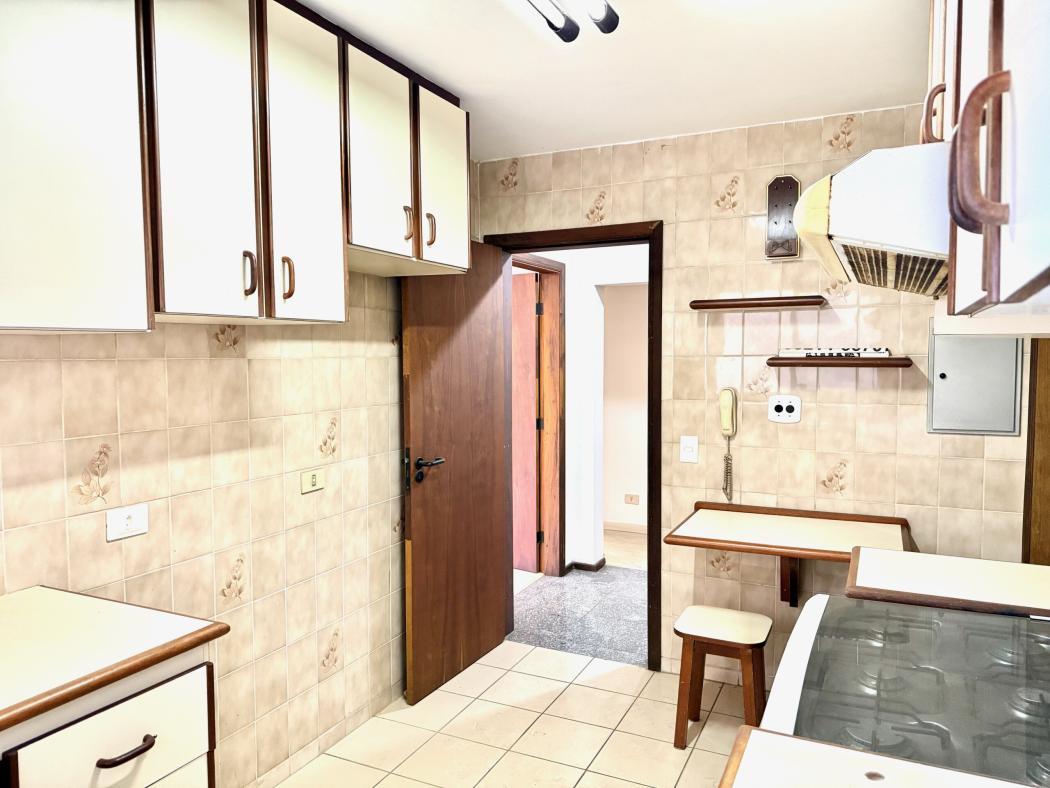 A cozinha é prática e ventilada, com área de serviço independente e dependência completa, característica cada vez mais rara em apartamentos no Bigorrilho. A funcionalidade da planta reforça o potencial de atualização sem necessidade de intervenções estruturais complexas.