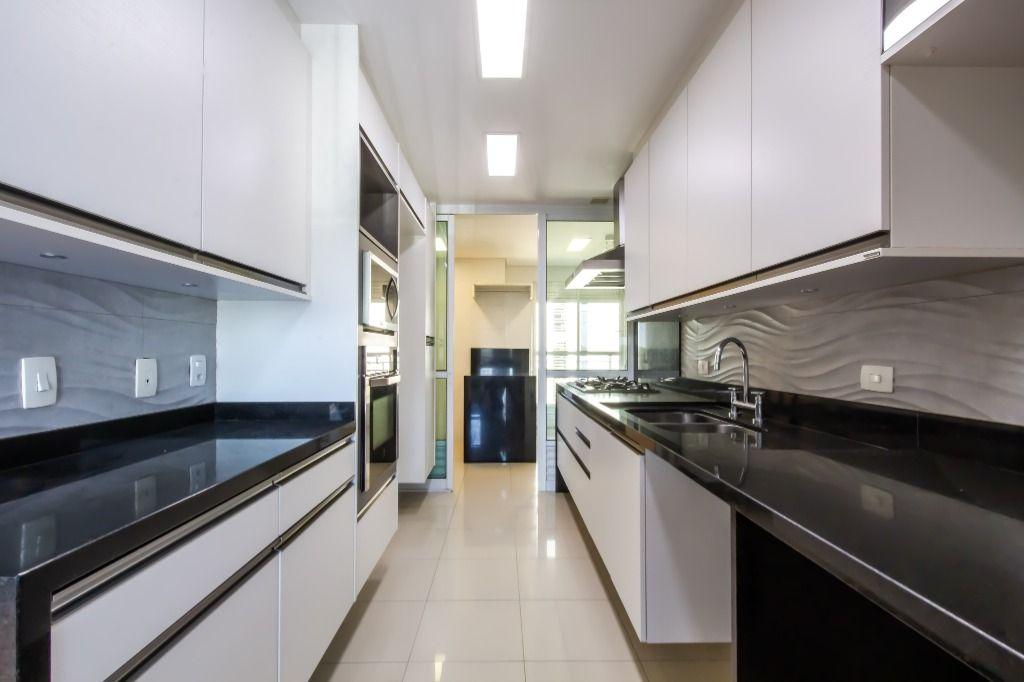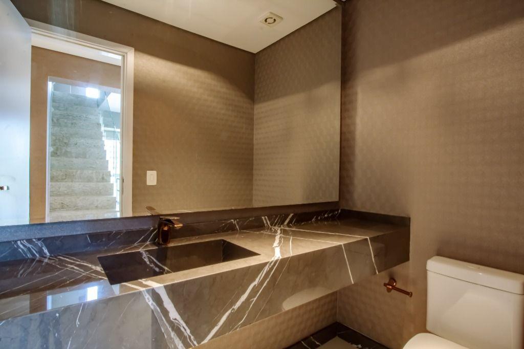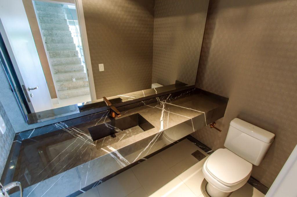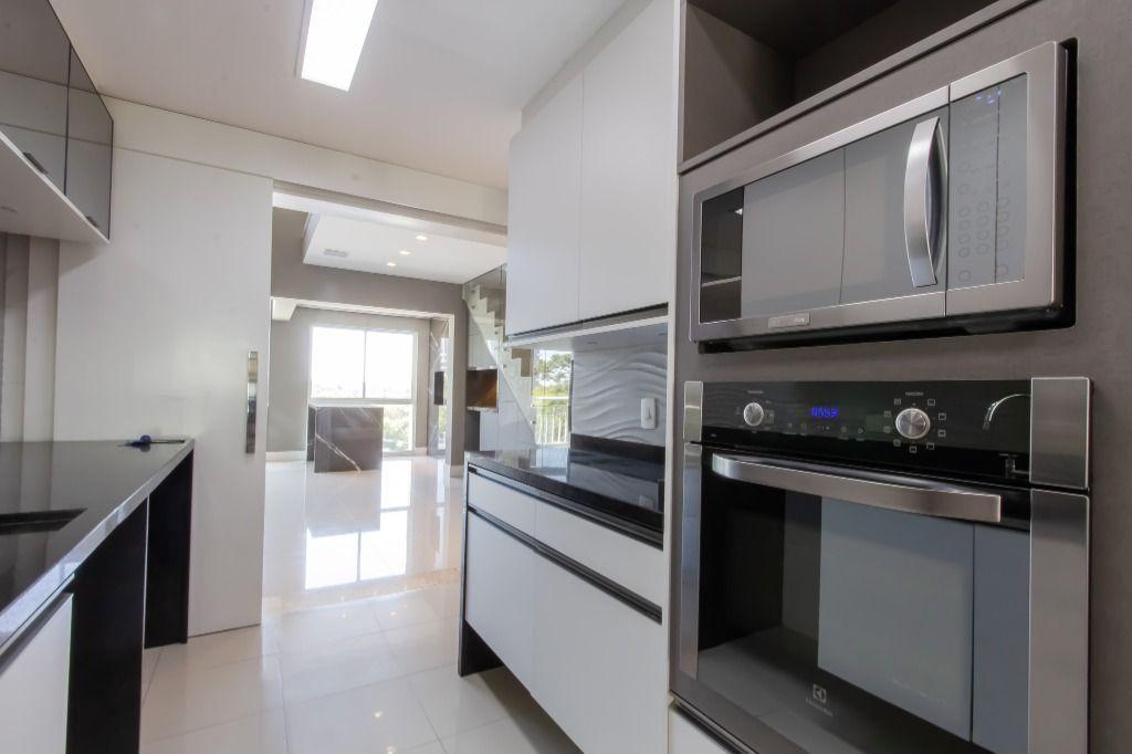 A planta é incrível, e você encontra: sala para 3 ambientes (com pé direito duplo); gourmet com churrasqueira; lavabo; ampla cozinha toda equipada (com marcenaria e eletro); área de serviço; dependência de empregados completa; 4 quartos (sendo 2 suítes) e 3 vagas de garagem!