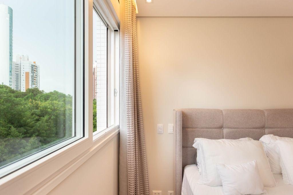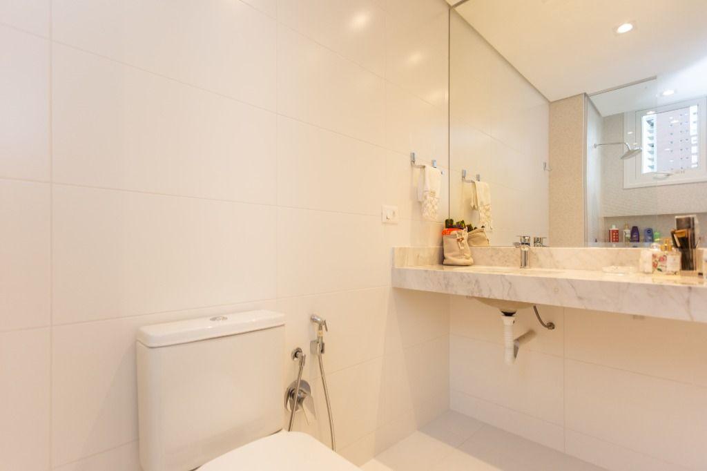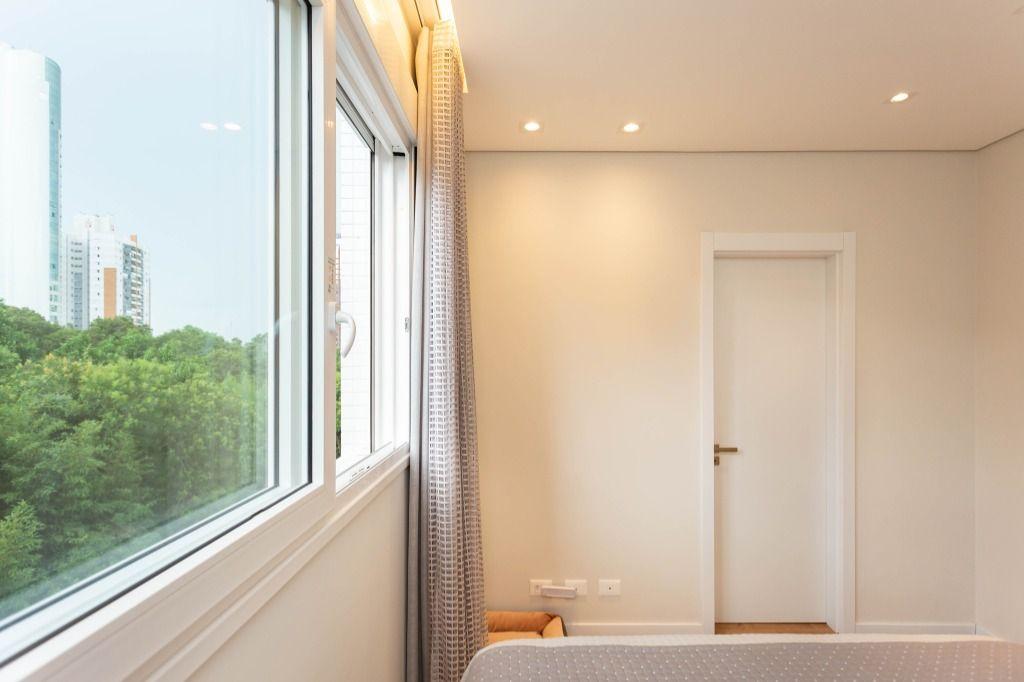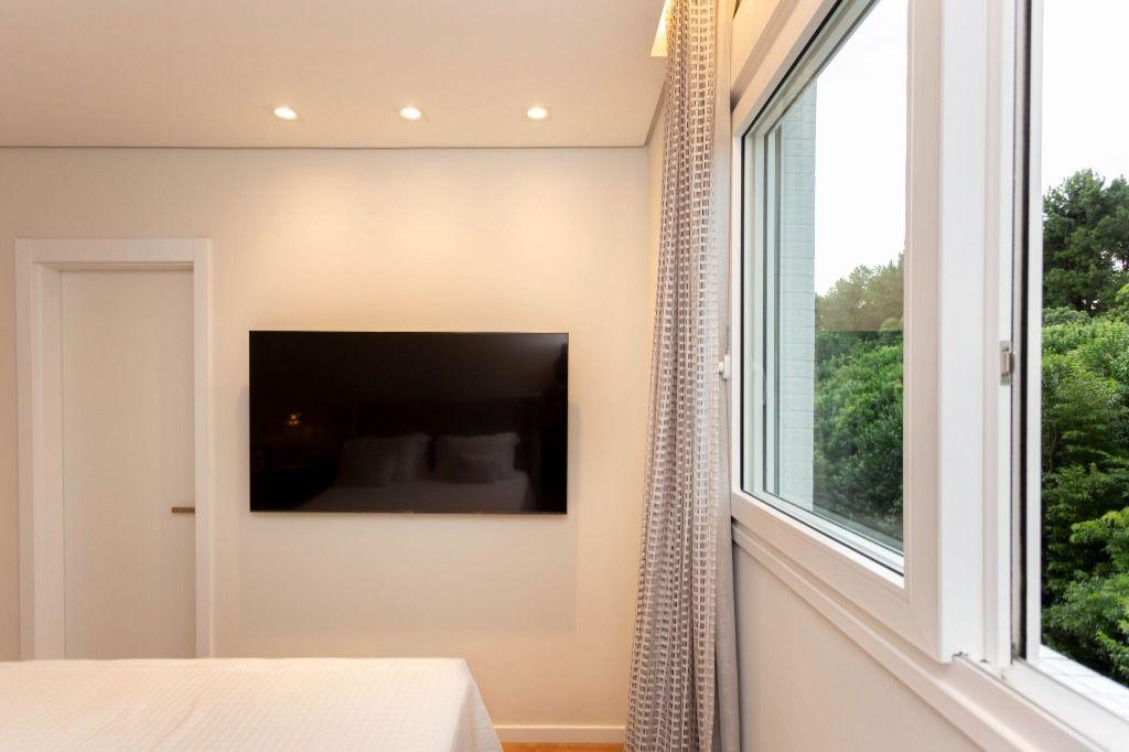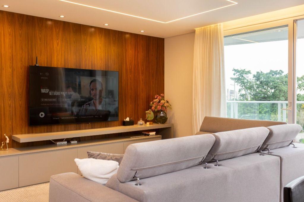 Apartamento primoroso cheio de detalhes numa mistura de materiais nobres com estética de encher os olhos. Lindo, com super varanda e vista que favorece o contemplativo das áreas verdes, trazendo a natureza para dentro de casa. Aqui as esquadrias vão do chão ao teto da marca WEIKU! E o conforto térmico e acústico é sem igual! Uma delícia! Todo em gesso, com projeto luminotécnico usando muito led, pendentes de iluminação, possui ainda rodapés brancos de 15cm, cortinas novas e já preparado para colocação dos splits.