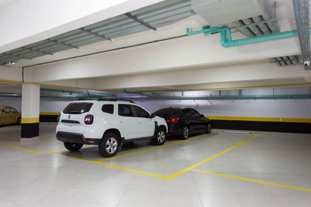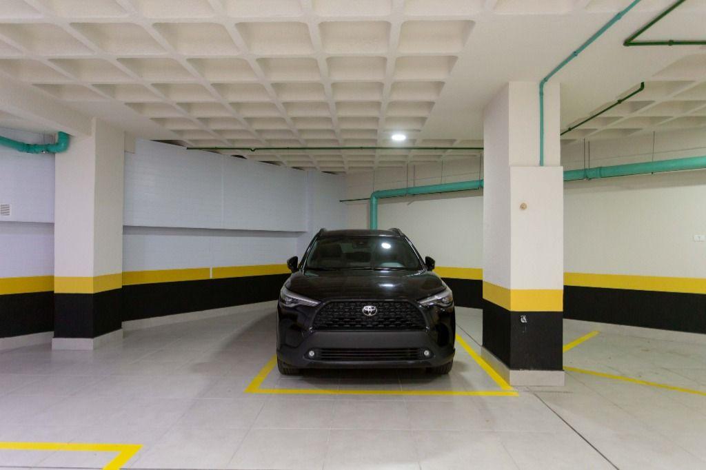 São 3 vagas de garagem (1 solta e 1 vagão para 2 carros). Possui entrada social e de serviço, banheiro de serviço e área técnica.