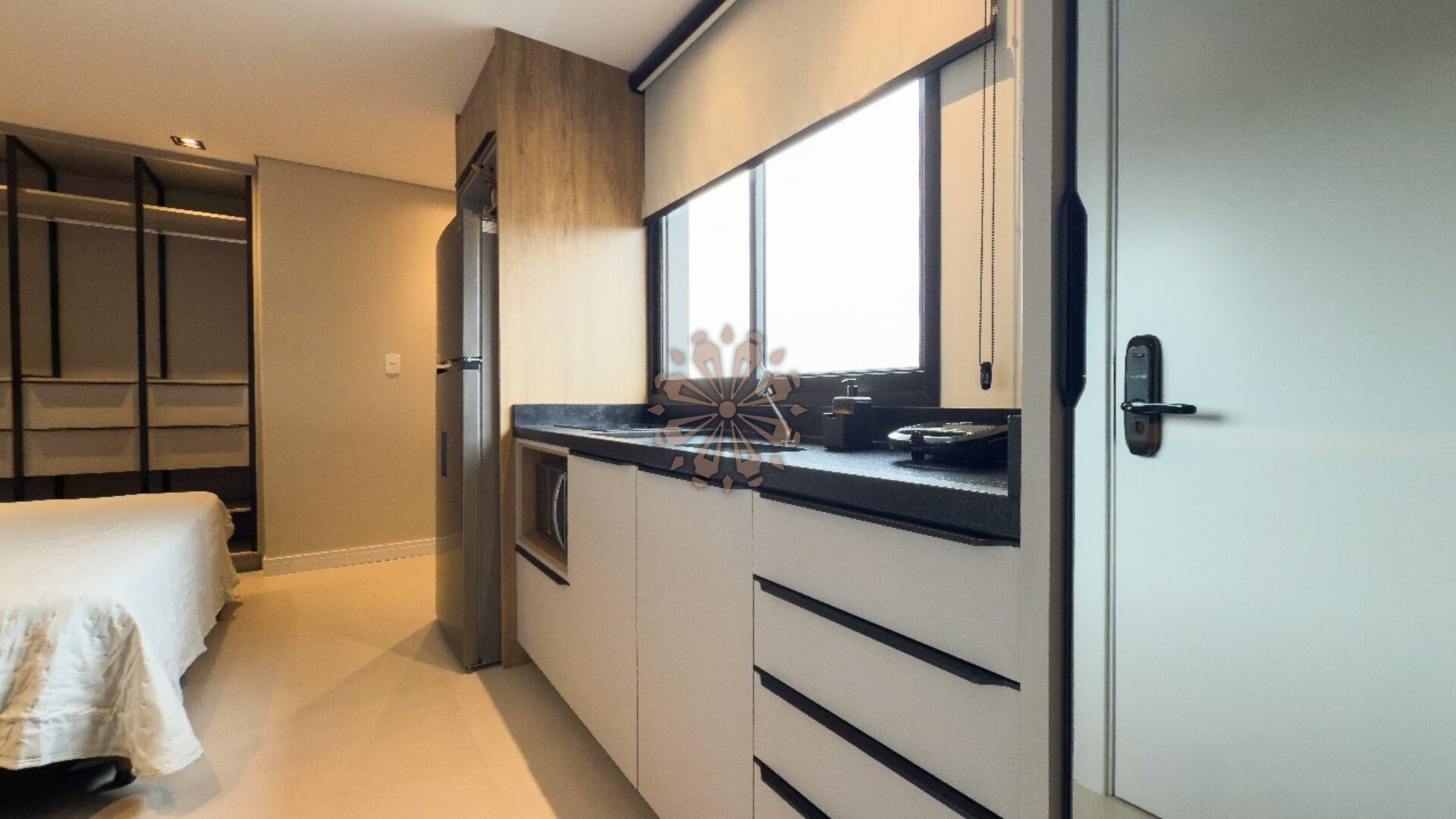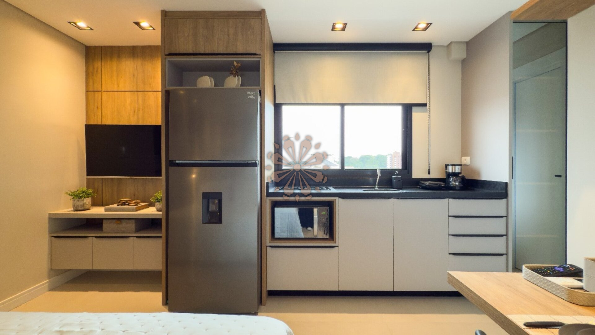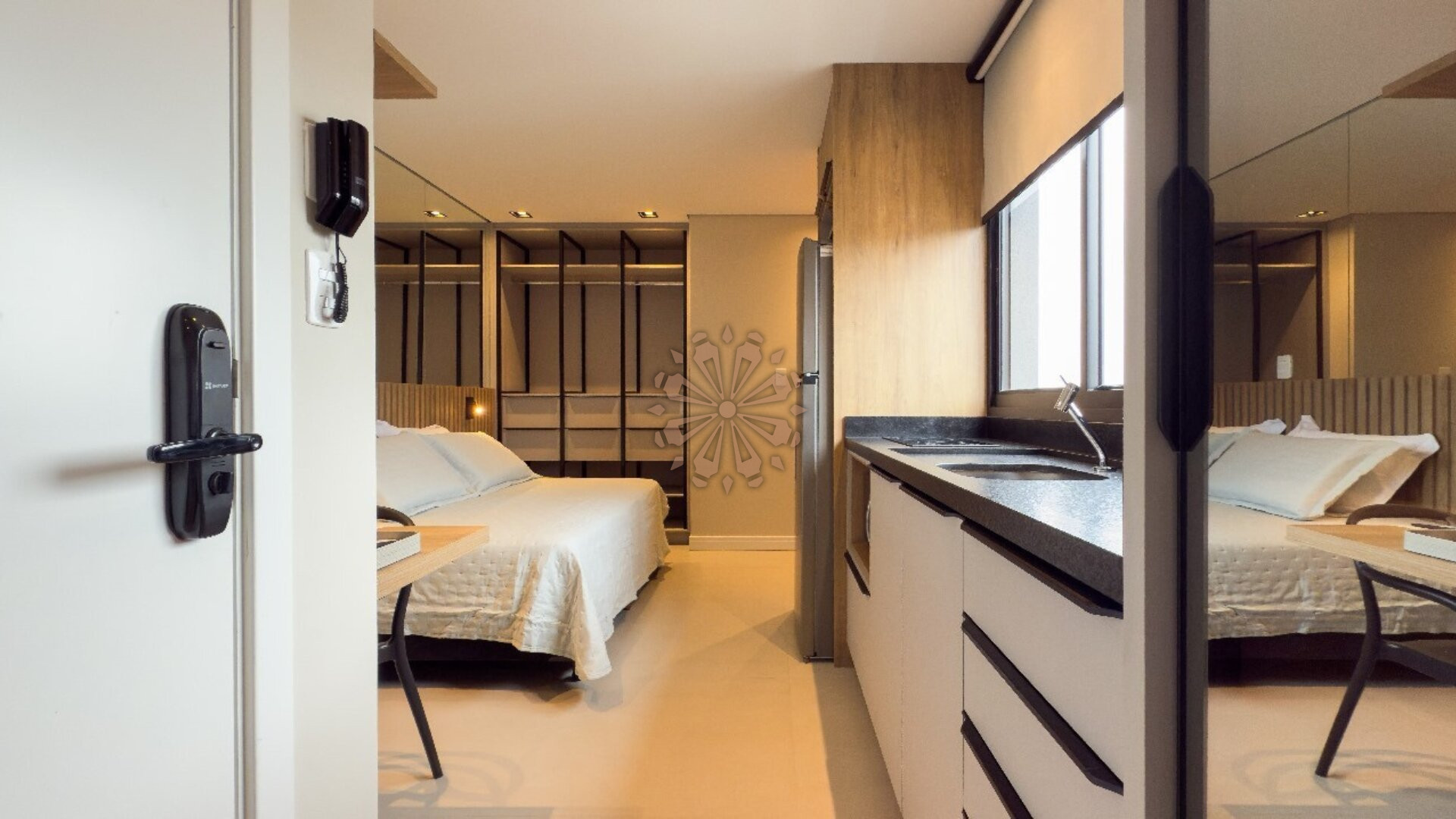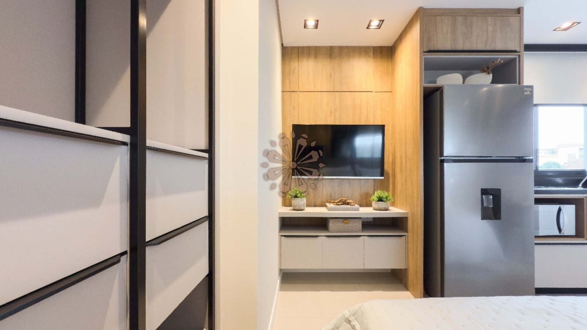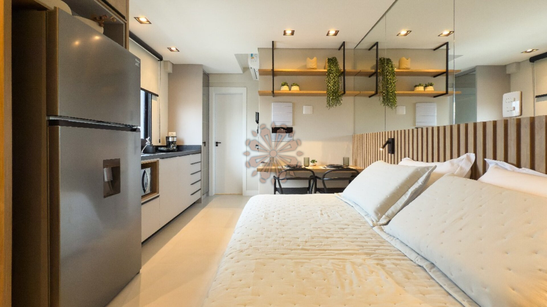 Studio mobiliado e decorado com 21,73 m² privativos, ideal para quem busca praticidade, conforto e excelente localização.