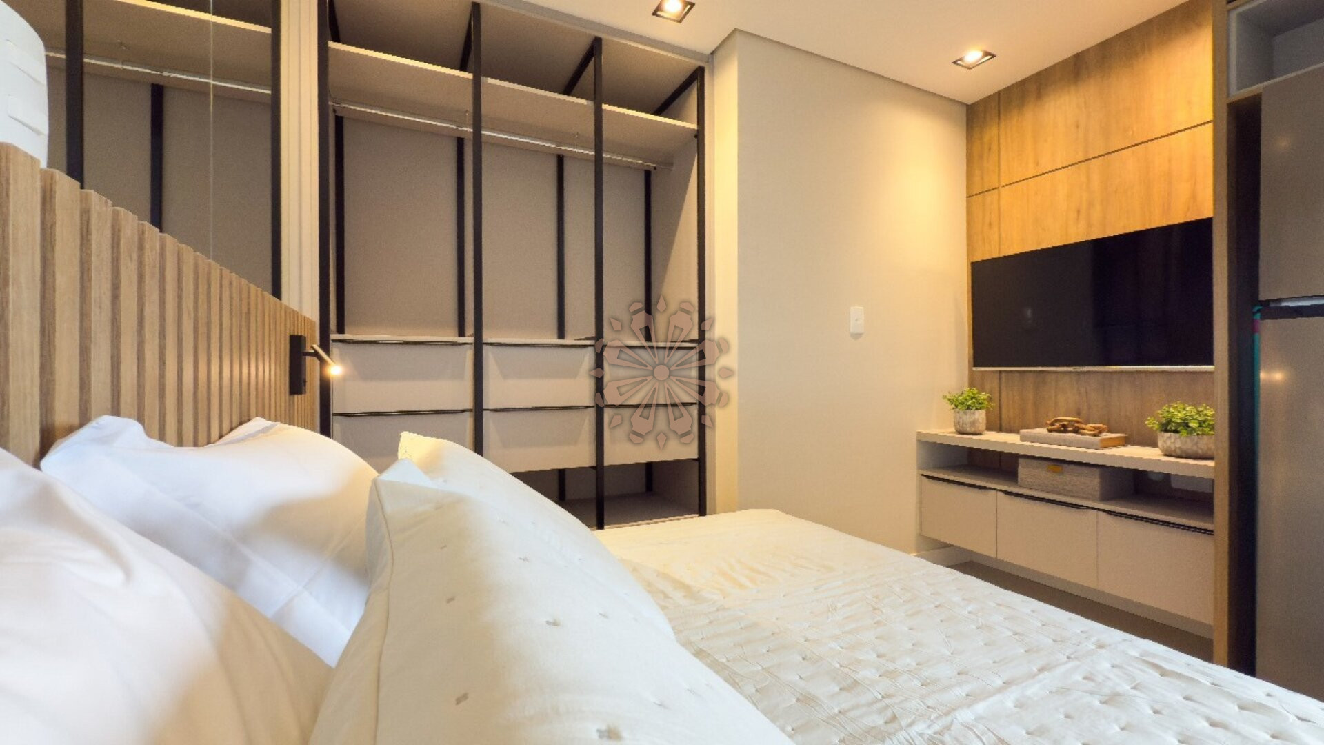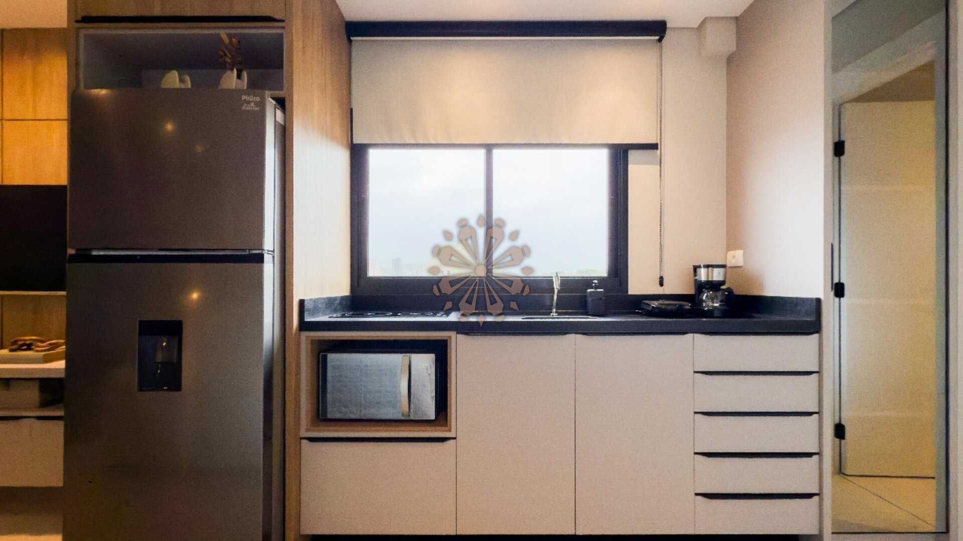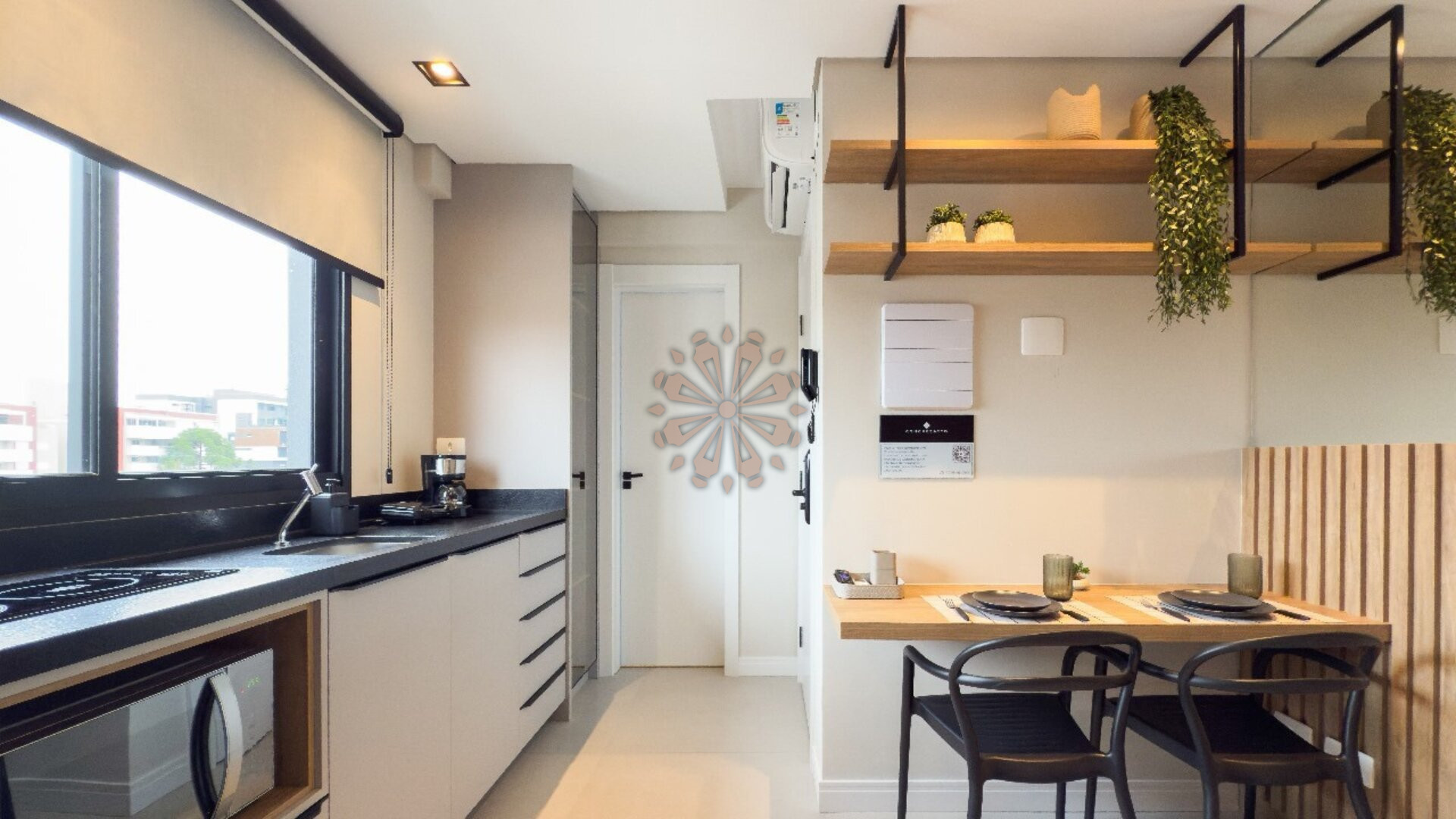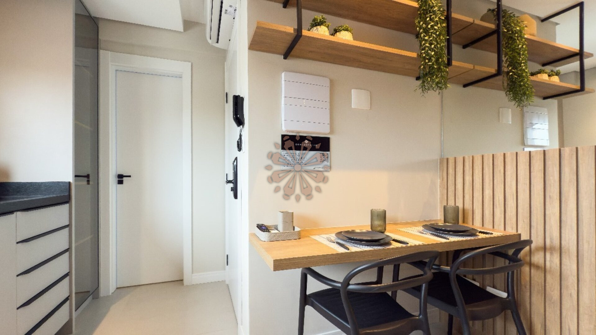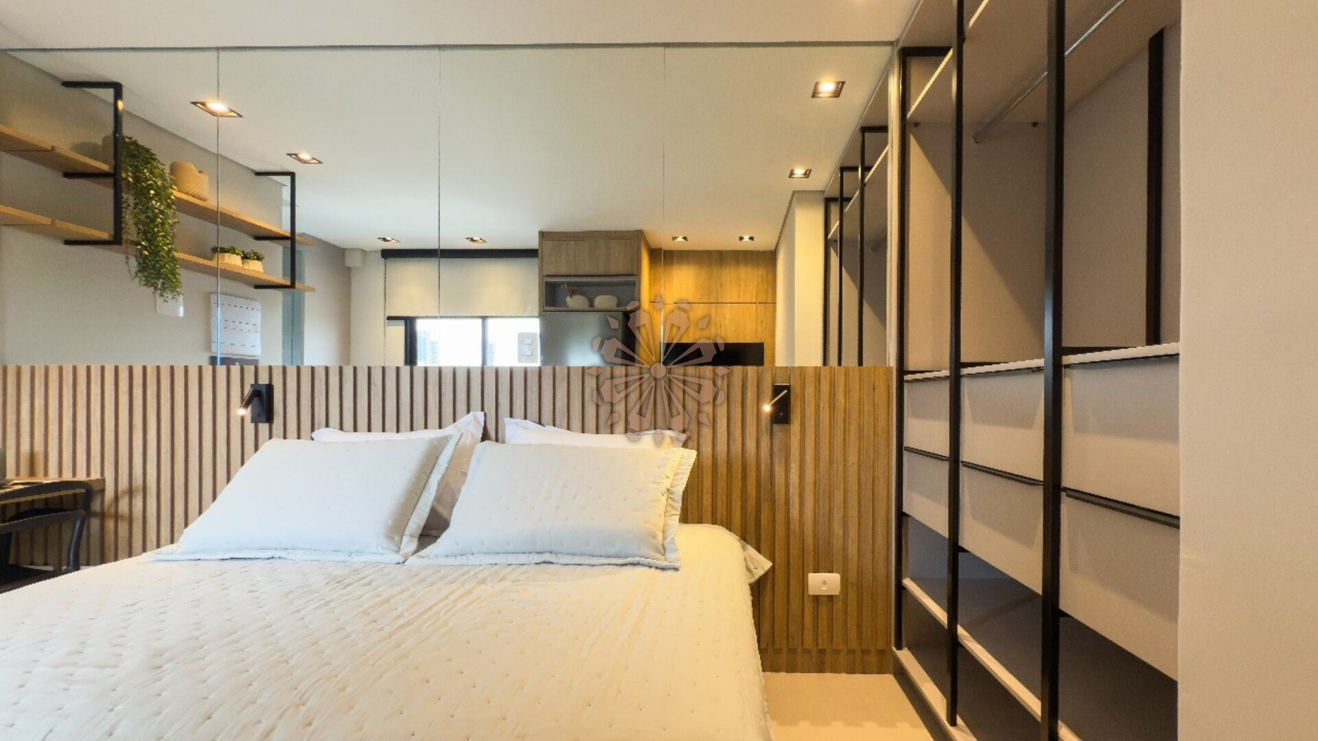 Studio mobiliado e decorado com 21,73 m² privativos, ideal para quem busca praticidade, conforto e excelente localização.