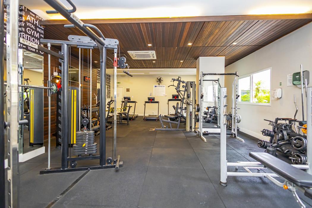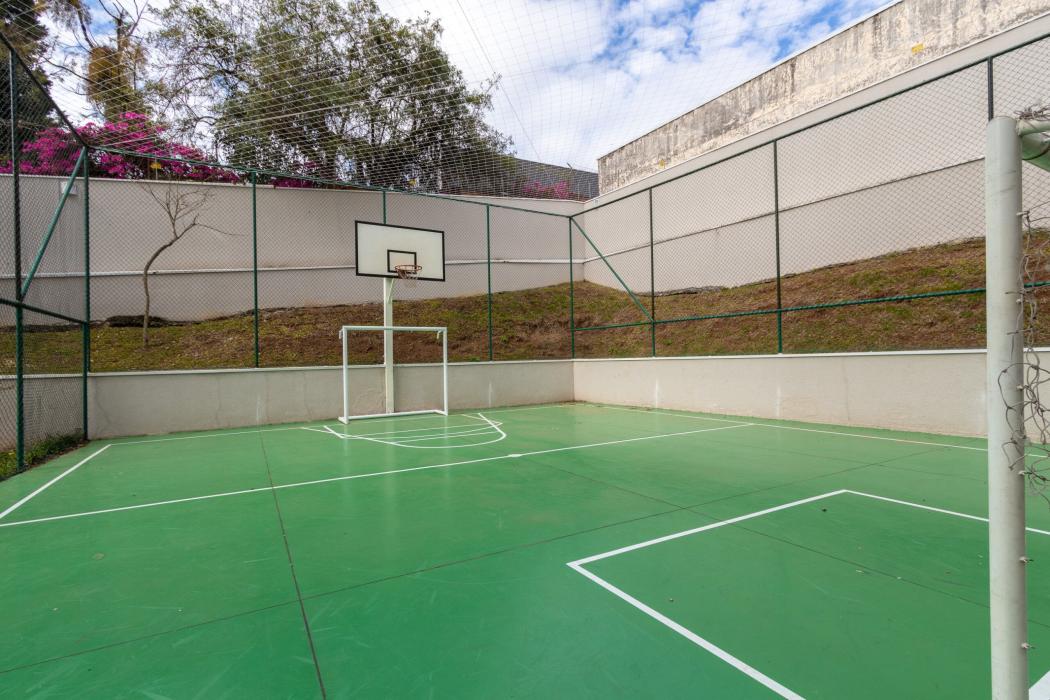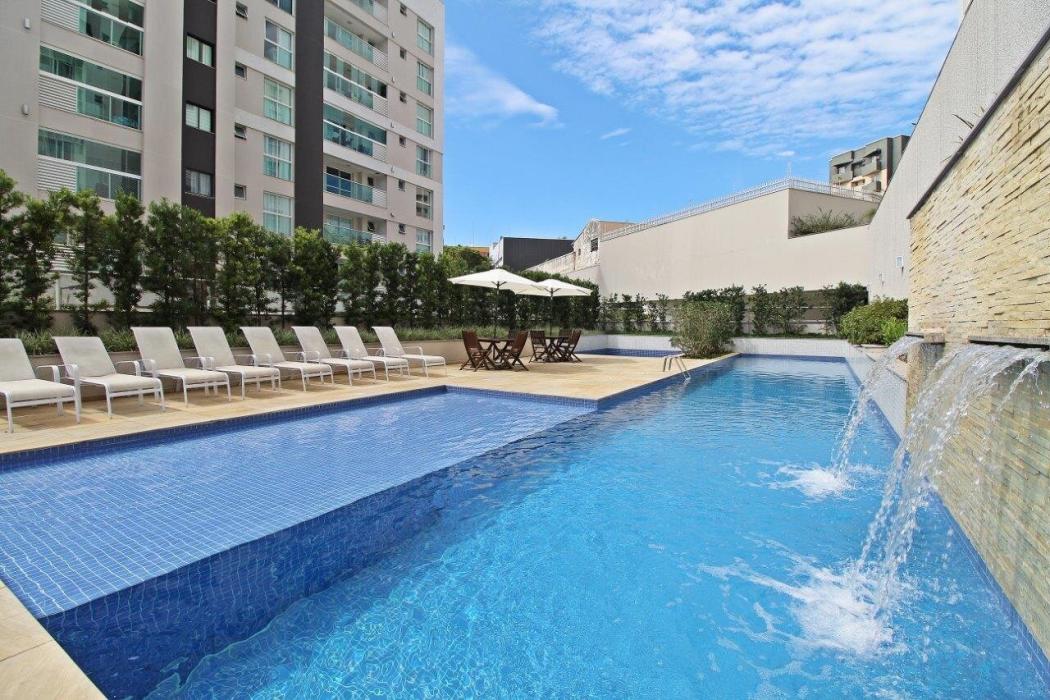Lazer: Piscina adulto e infantil com sistema de climatização (quebra-gelo), sauna seca, academia profissional, quadra poliesportiva e playground.