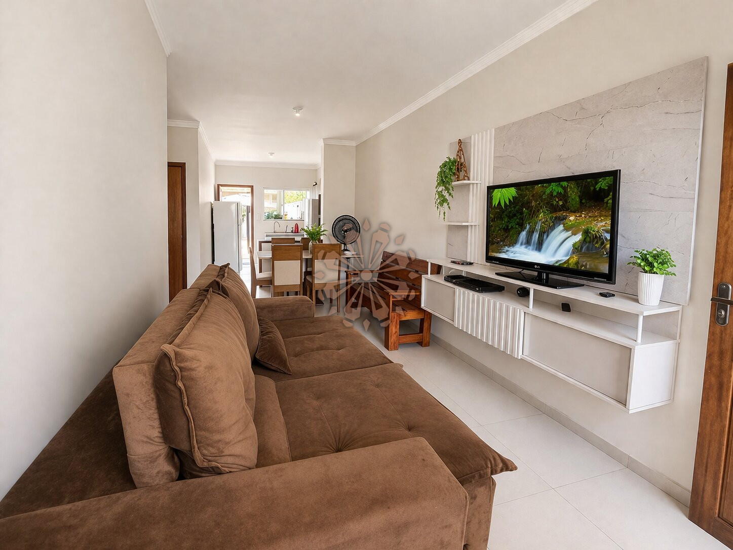 A casa possui ambientes bem distribuídos, sala com ar condicionado e cozinha integradas, trazendo praticidade e melhor convivência no dia a dia.