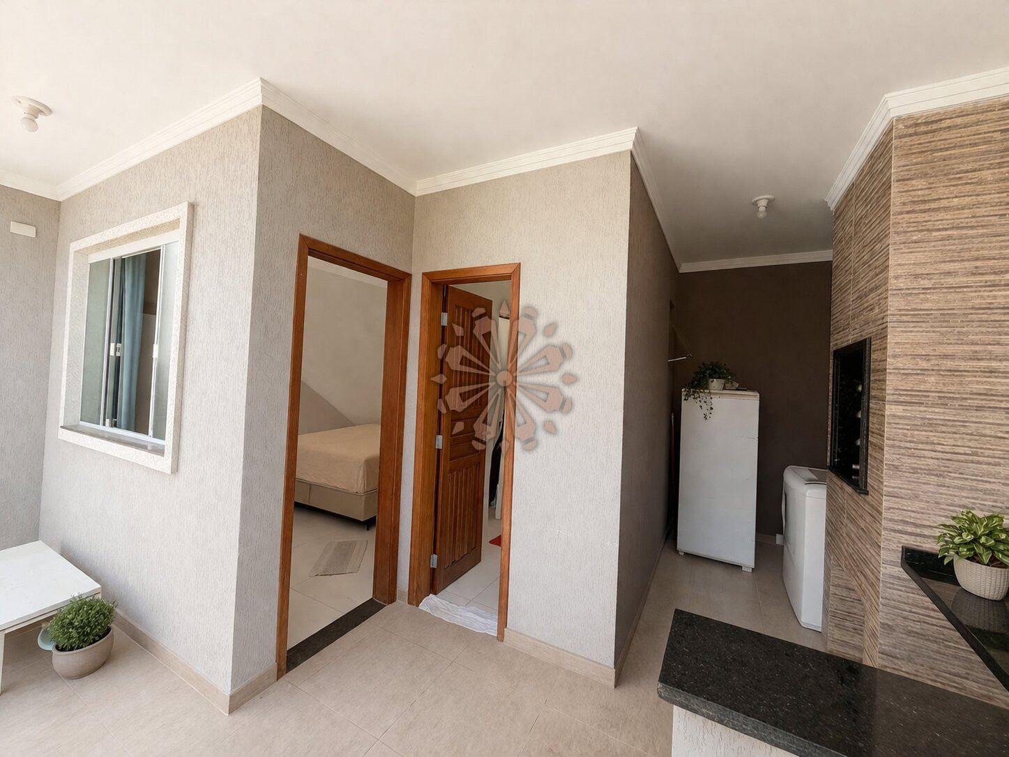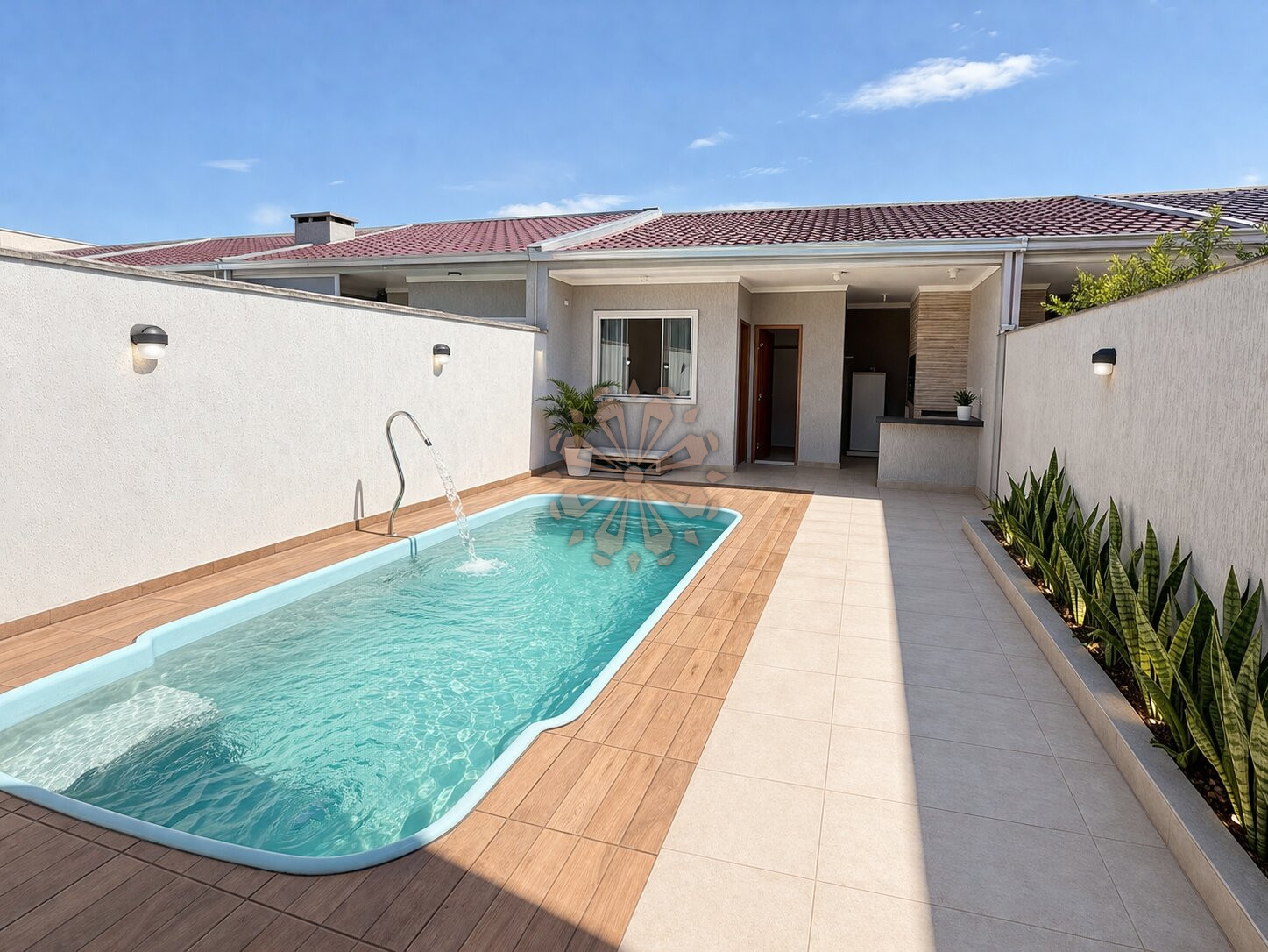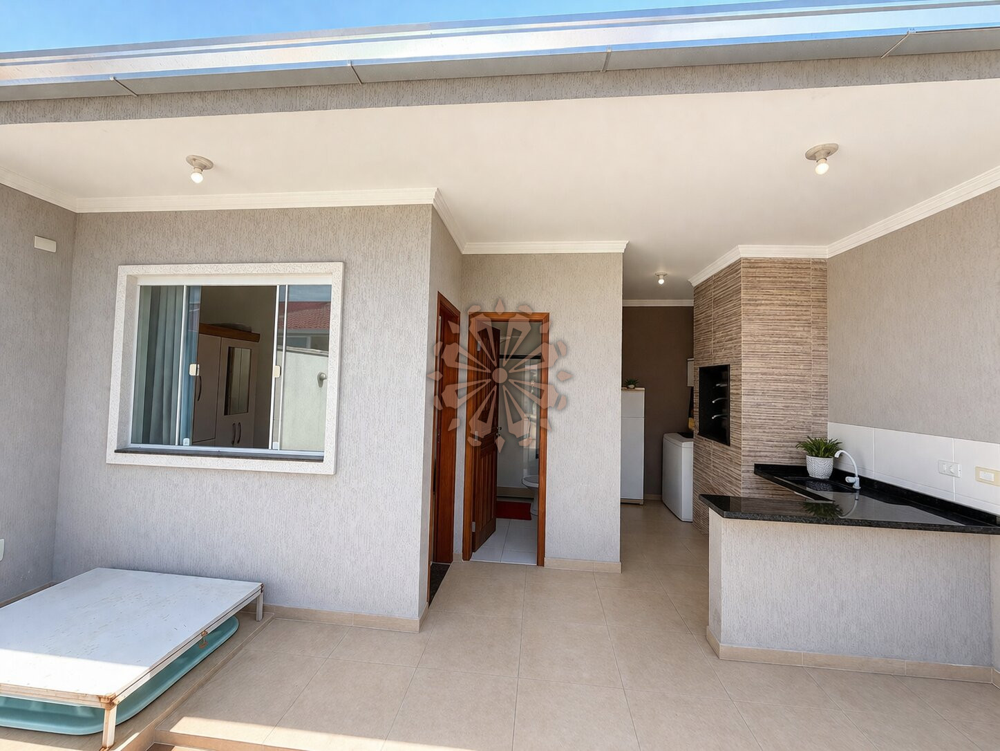 Nos fundos, o imóvel conta com 1 suíte, churrasqueira e área de serviço, perfeita para receber amigos e familiares com mais conforto.
