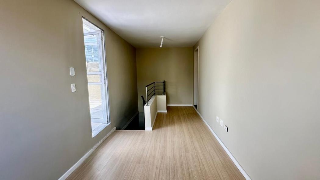 Parte superior com sala e terraço versáteis para criar novos ambientes.