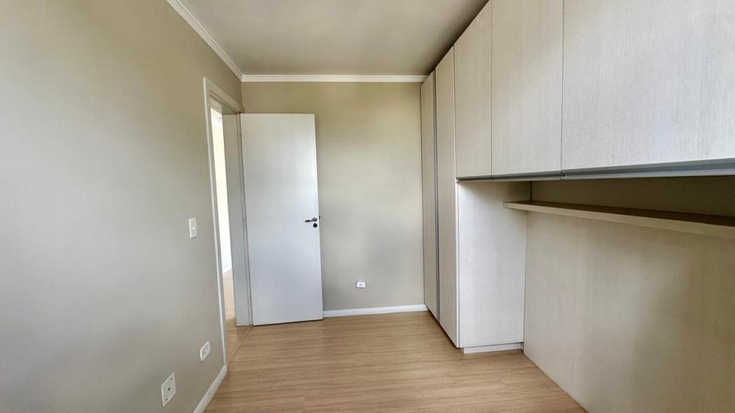 Ambientes com armários planejados na suíte, cozinha e banheiros.