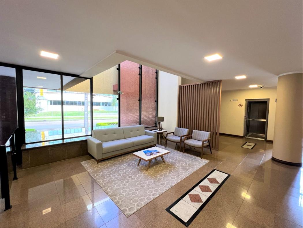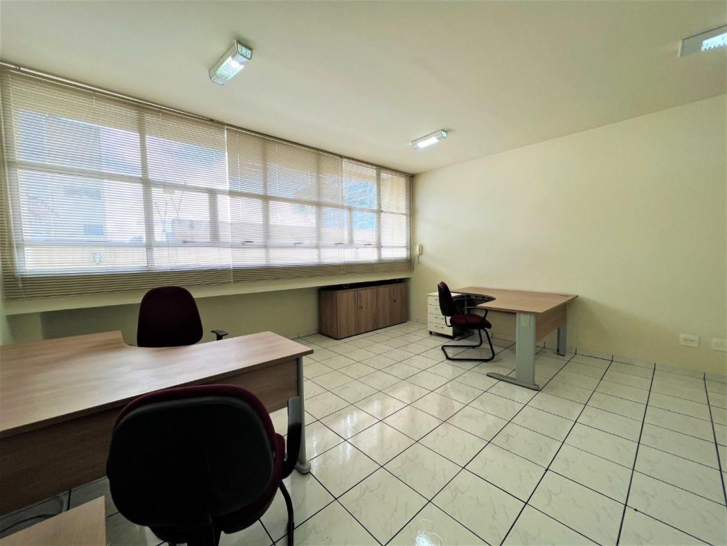 Sala Comercial em Curitiba, ao lado da Faculdade Curitiba, Bairro Rebouças, localização comercial, Janelas amplas, 1 vaga exclusiva, mobiliada, infra para ar-condicionado, instalação de Cozinha com divisória de vidro, e 1 bwc. Ficam os moveis das fotos, sendo mesas e armários.