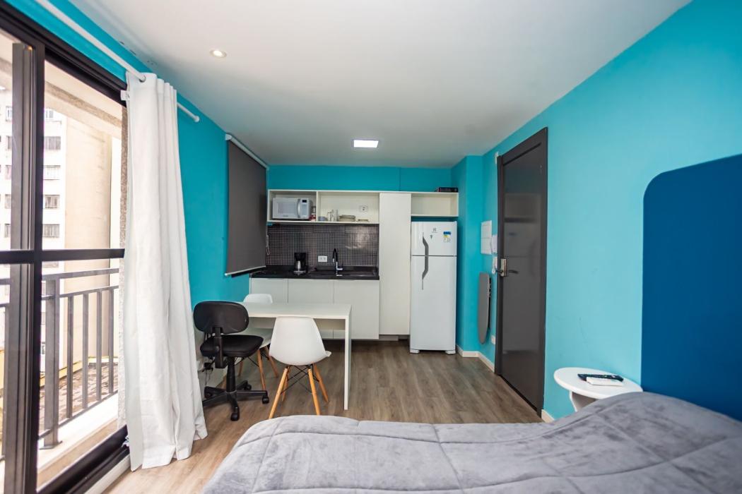 Studio com 25,35 m2 privativos.