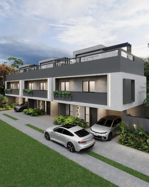 Sobrado novo, em condomínio, c/ fino acabamento, arquitetura moderna, bem ensolarado e ventilado, medindo aprox. 120,64m² em excelente localização na Rua São Judas Tadeu, 192 Capão Raso - Curitiba/Pr. (Estuda-se imóvel ou veículos como parte de pagamento).