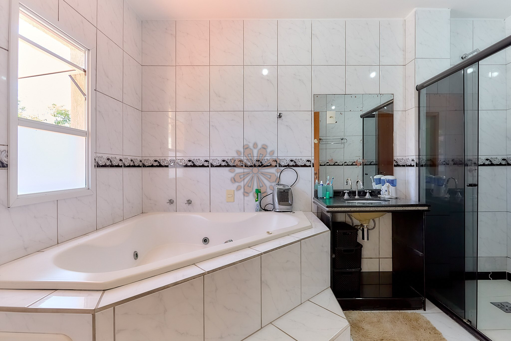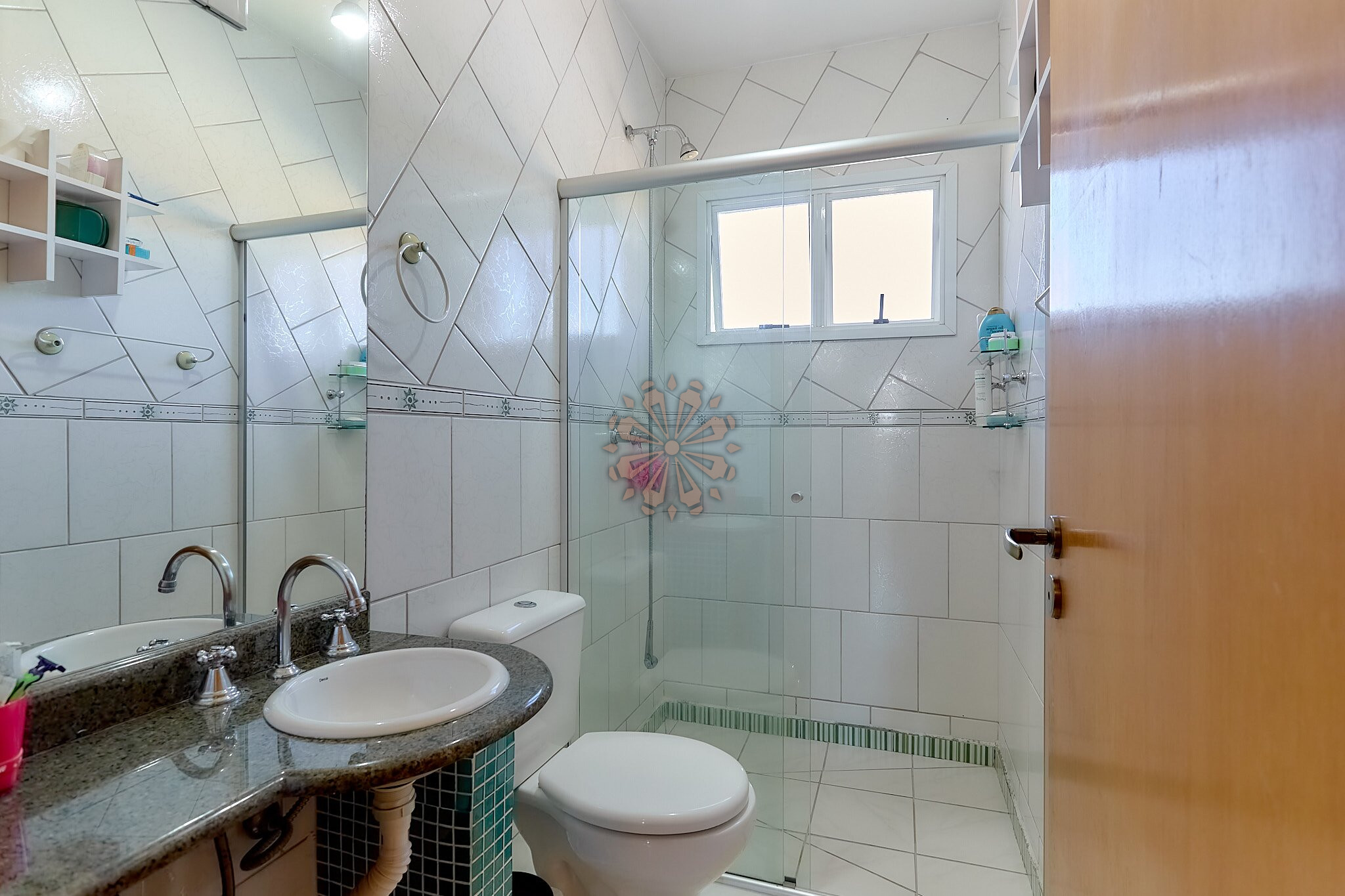 No segundo pavimento, dispõe de três dormitórios, sendo uma suíte com sacada e banheira, além de banheiro social que atende os demais quartos.
