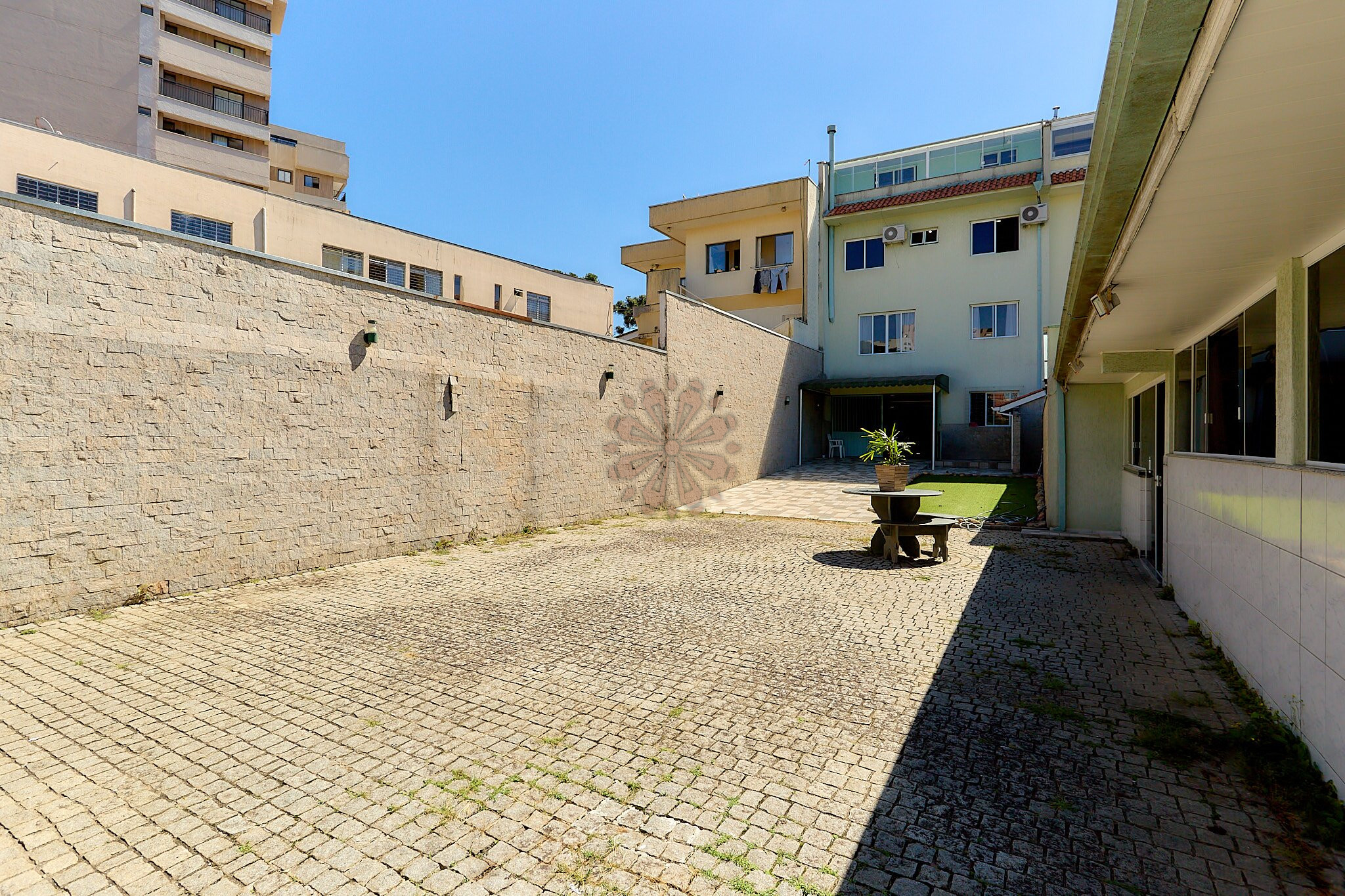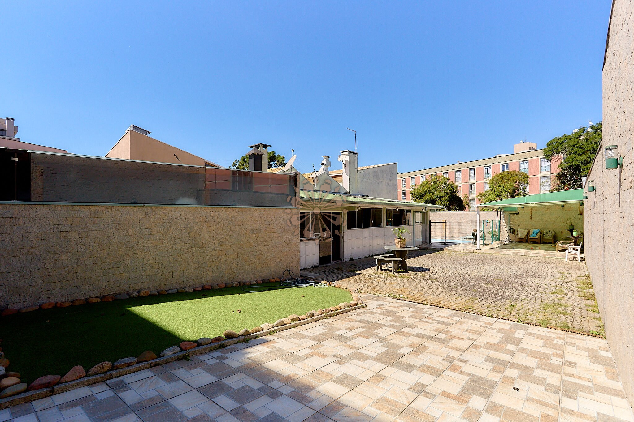 Nos fundos, o imóvel possui um excelente espaço externo, com área de lazer, espaço gourmet, piscina e área gramada, ideal para momentos de convivência.