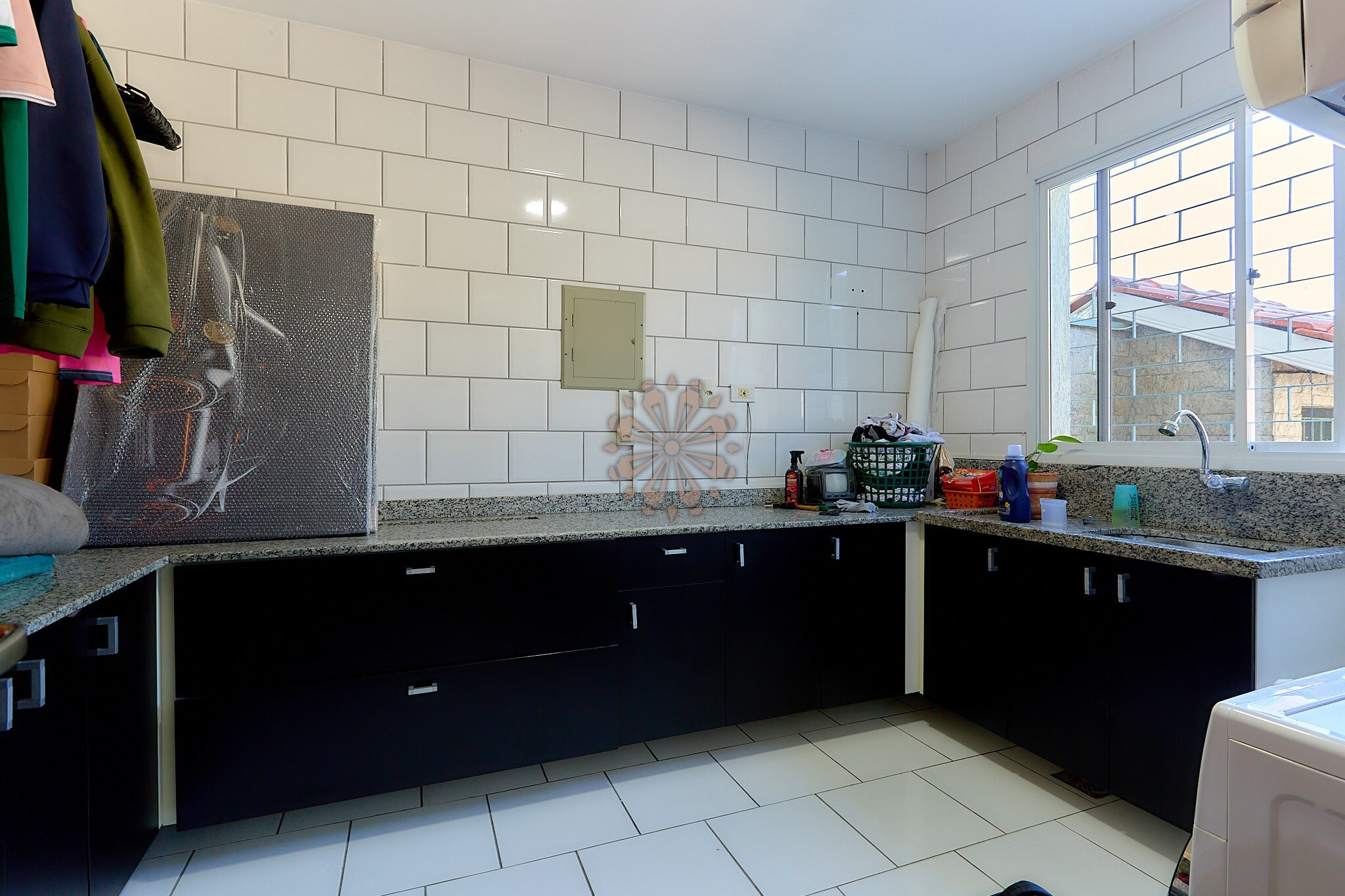 Conta com jardim frontal, garagem com portão eletrônico e acesso independente por portão de pedestres. No pavimento térreo, possui sala de estar e jantar integradas, ambientes espaçosos com acabamento em gesso e mobiliário, além de cozinha equipada e área de serviço.