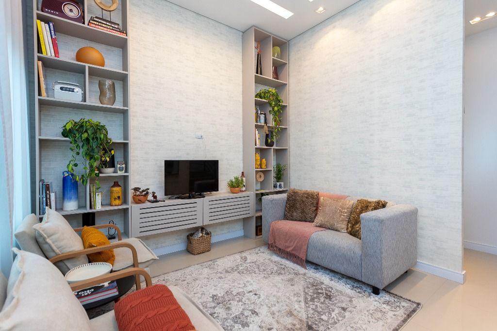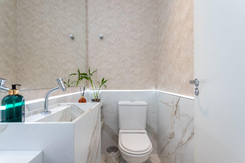 A área social possui sala em desnível, que agrega charme e sofisticação ao ambiente entre o estar e o jantar, integrando a cozinha para ótimos momentos em família e amigos. E um lavabo decorado que completa o conforto no pavimento social.