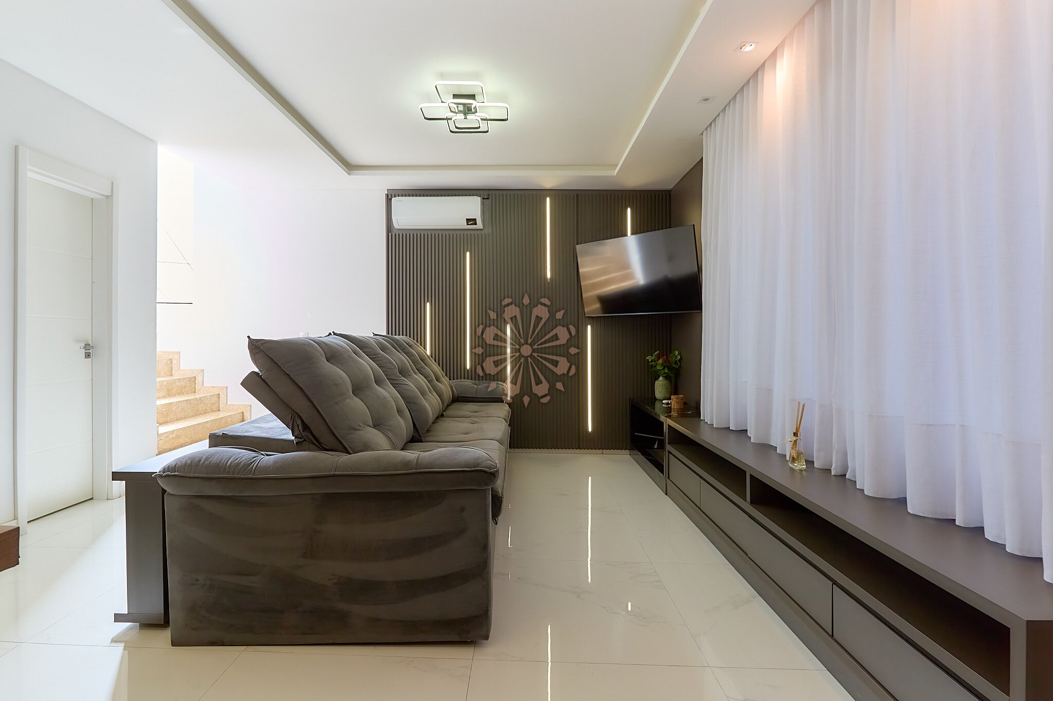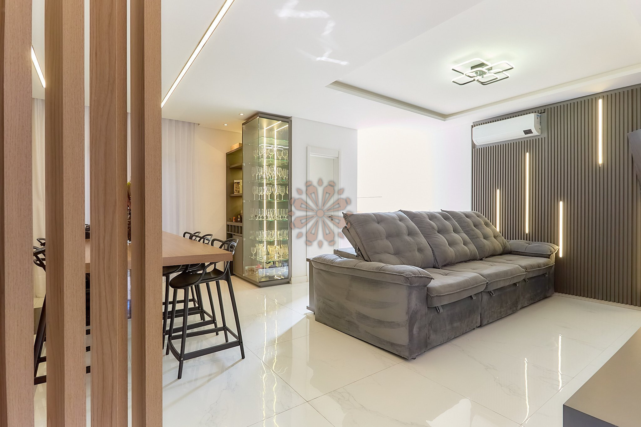 | - Sala para dois ambientes mobiliada; | |