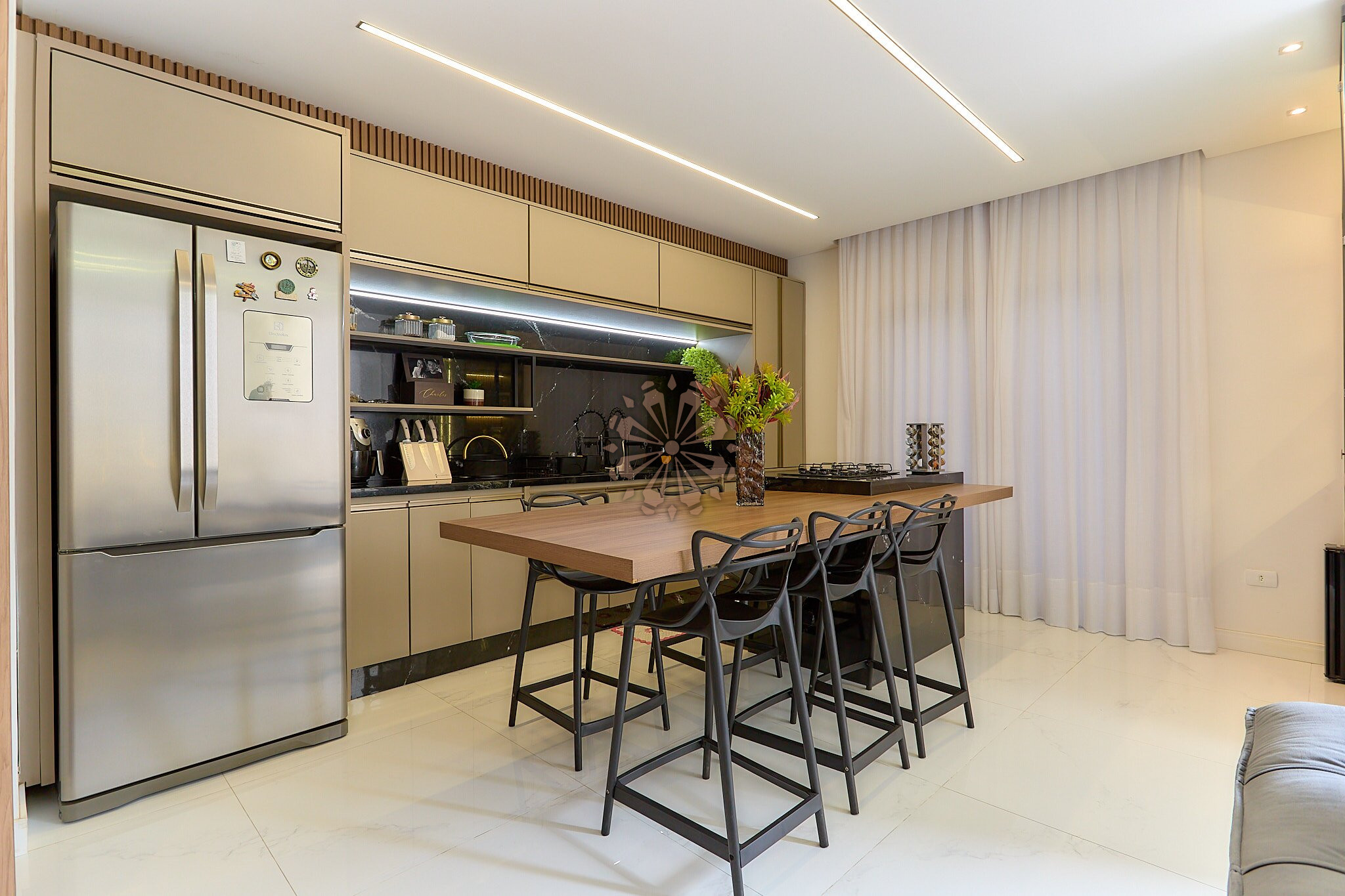 Sobrado mobiliado de alto padrão em Santa Felicidade, com 211,53 m² de área total, localizado em uma região tranquila, arborizada e muito valorizada. Um imóvel moderno, com excelente distribuição dos ambientes e acabamento sofisticado. Porteira fechada!