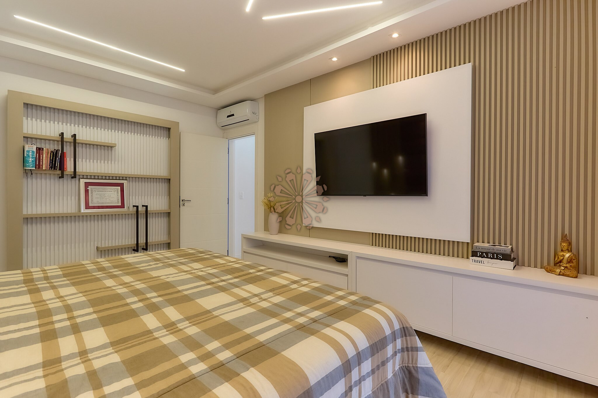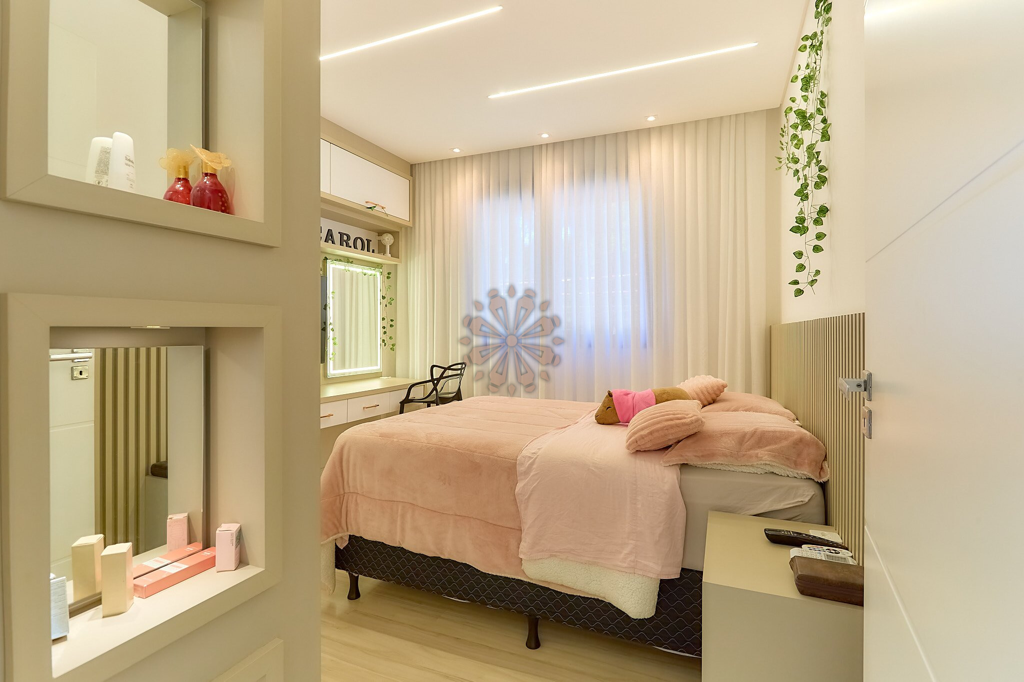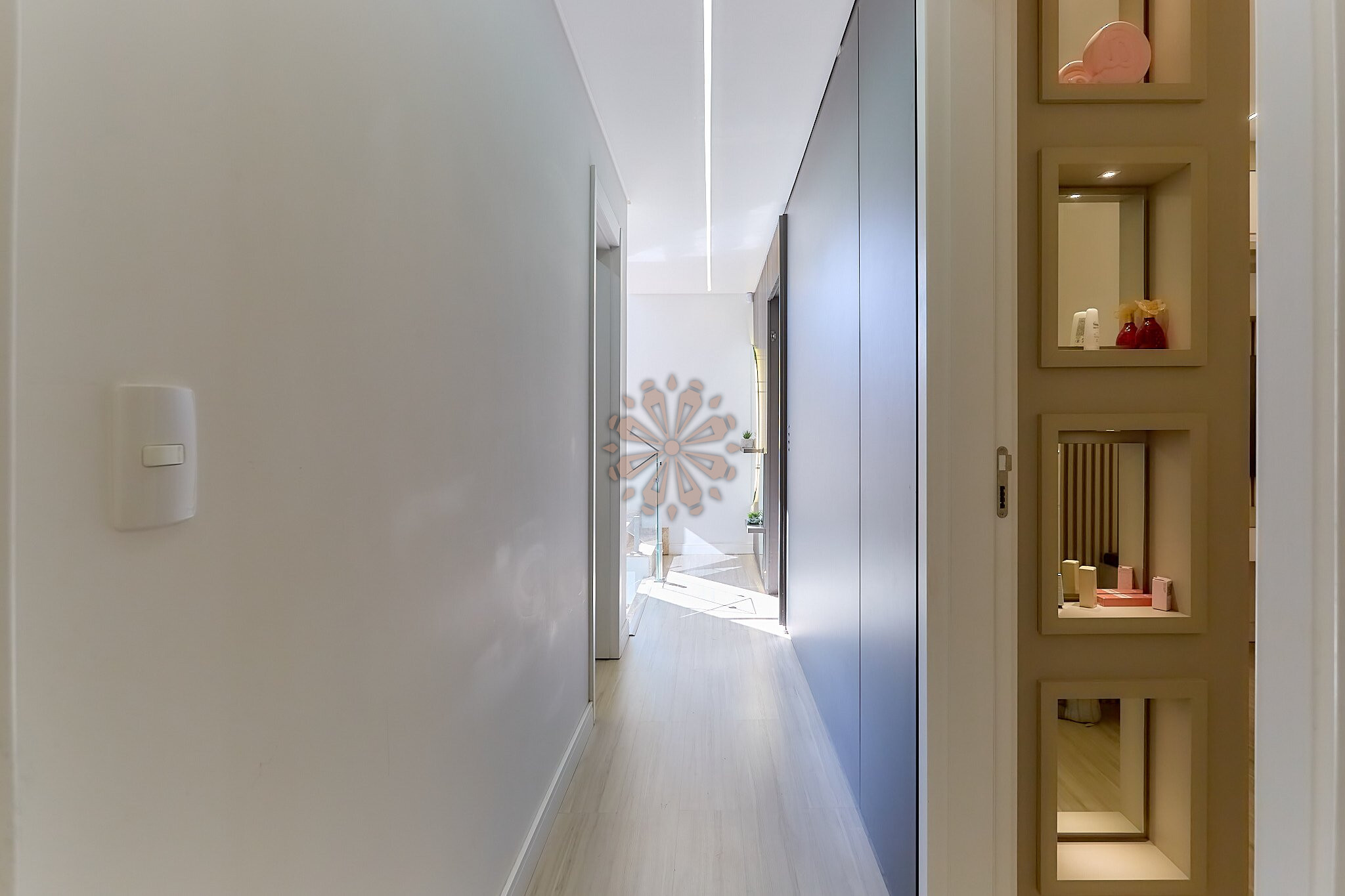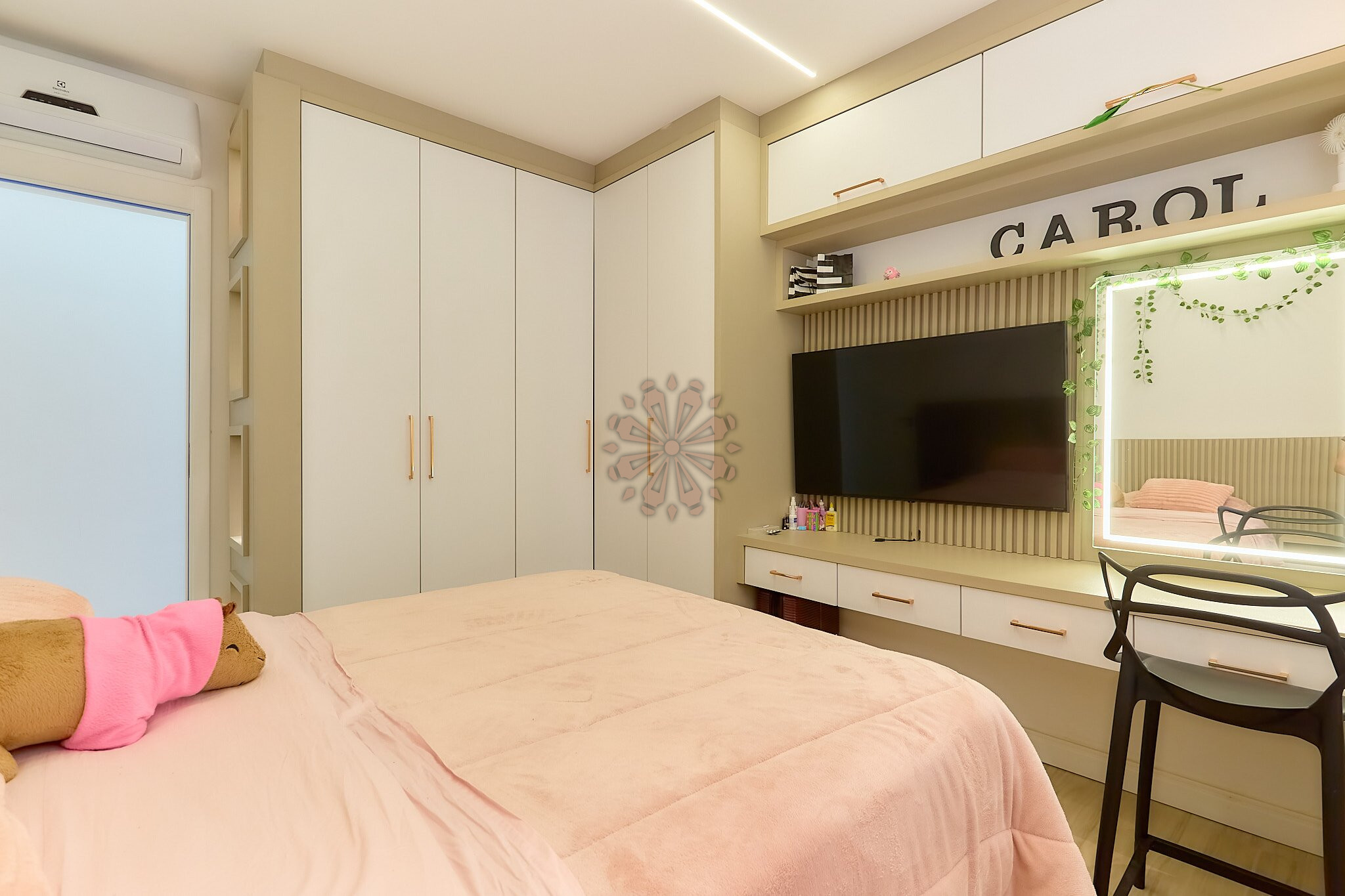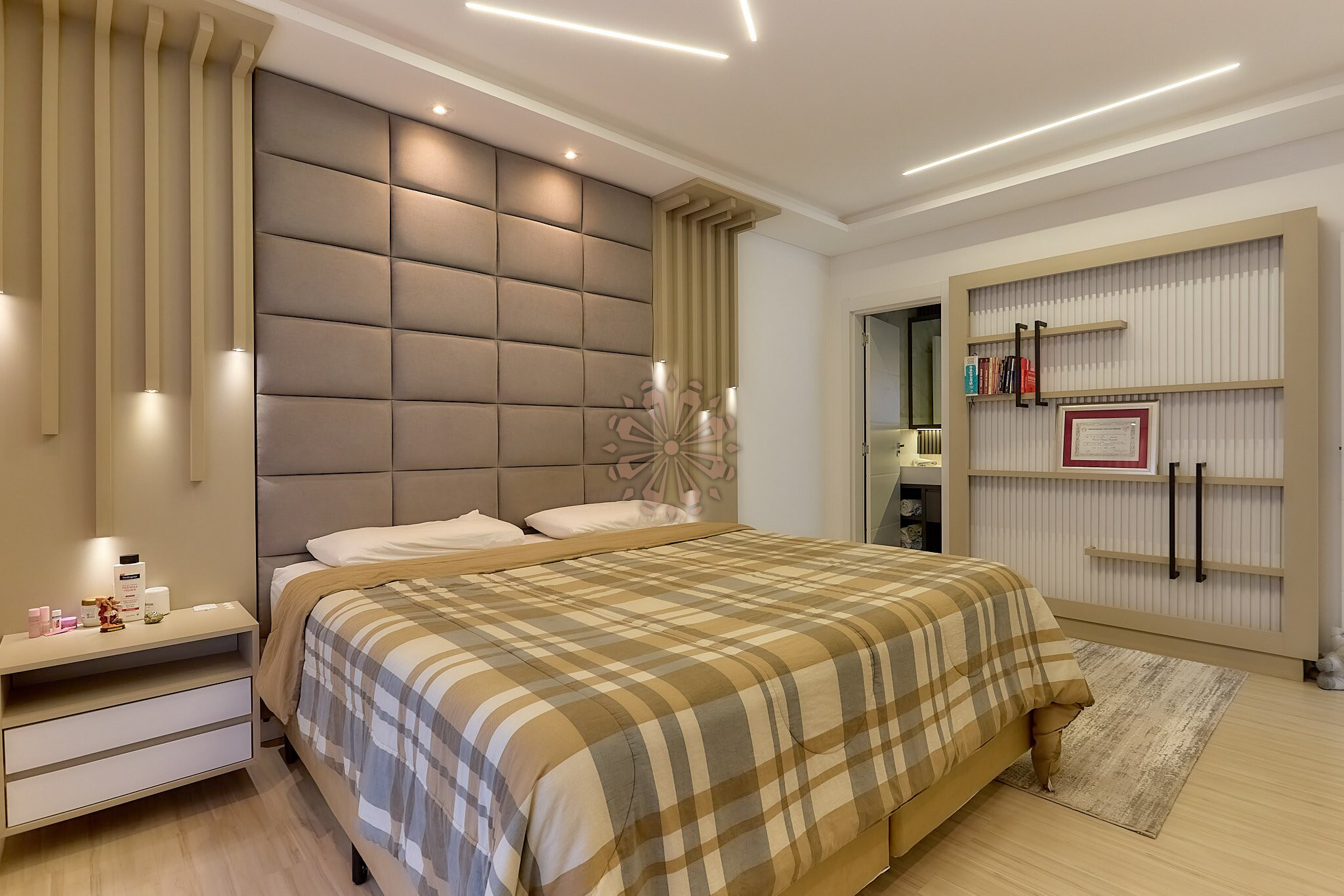 O segundo pavimento possui 3 dormitórios, sendo 1 suíte máster, além de um dos quartos revertido em closet, garantindo mais espaço e funcionalidade. Conta também com banheiro social.