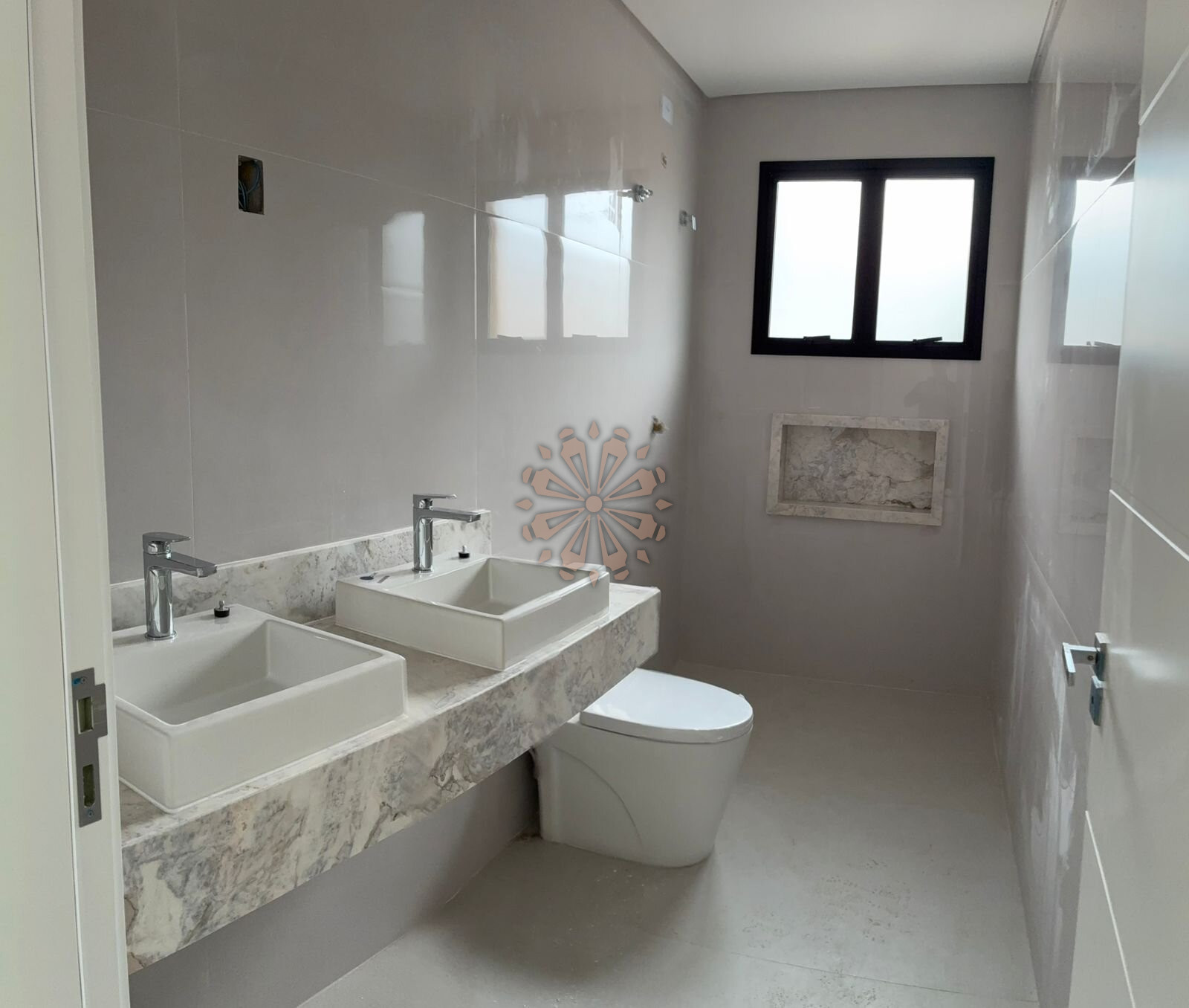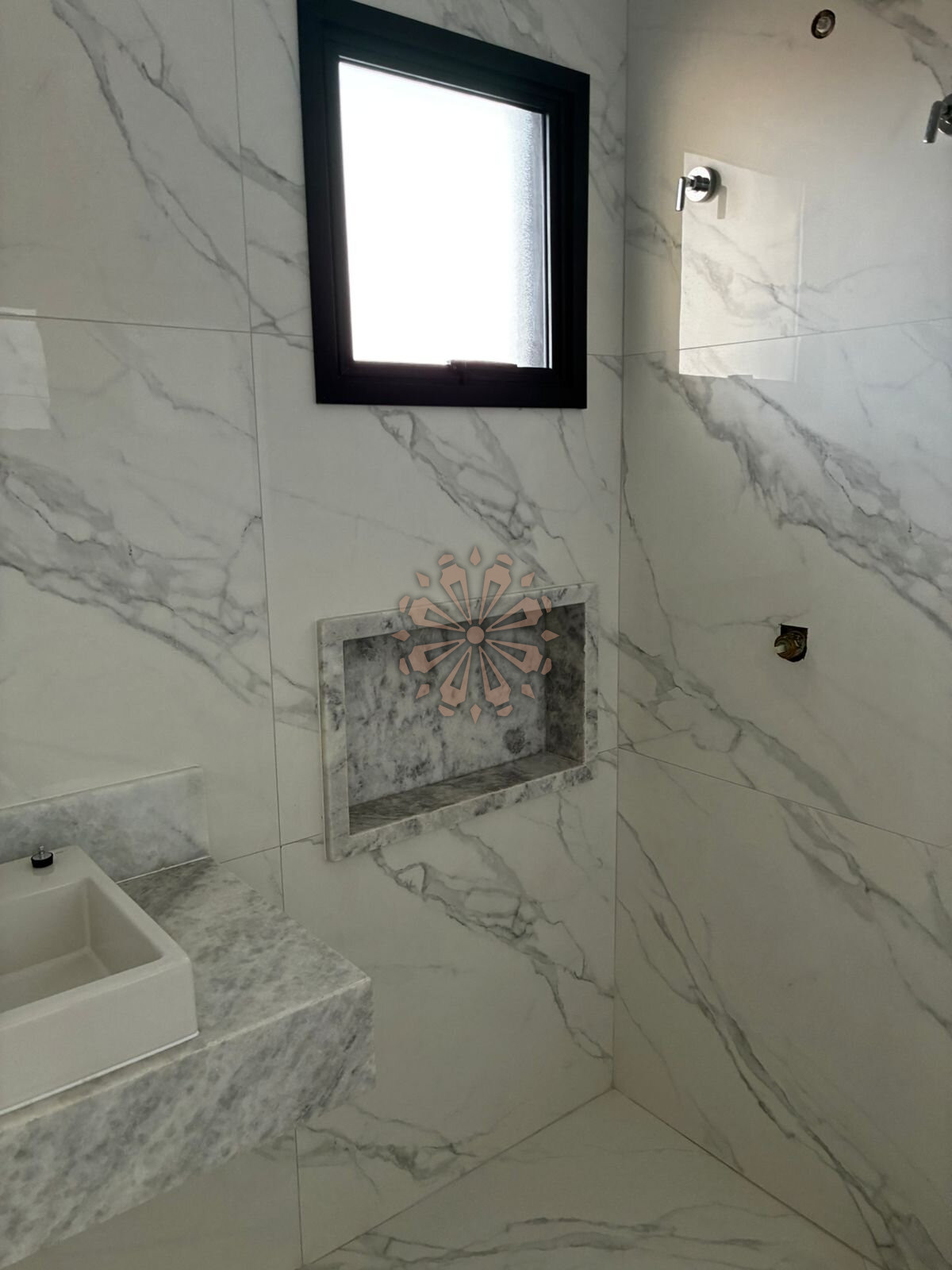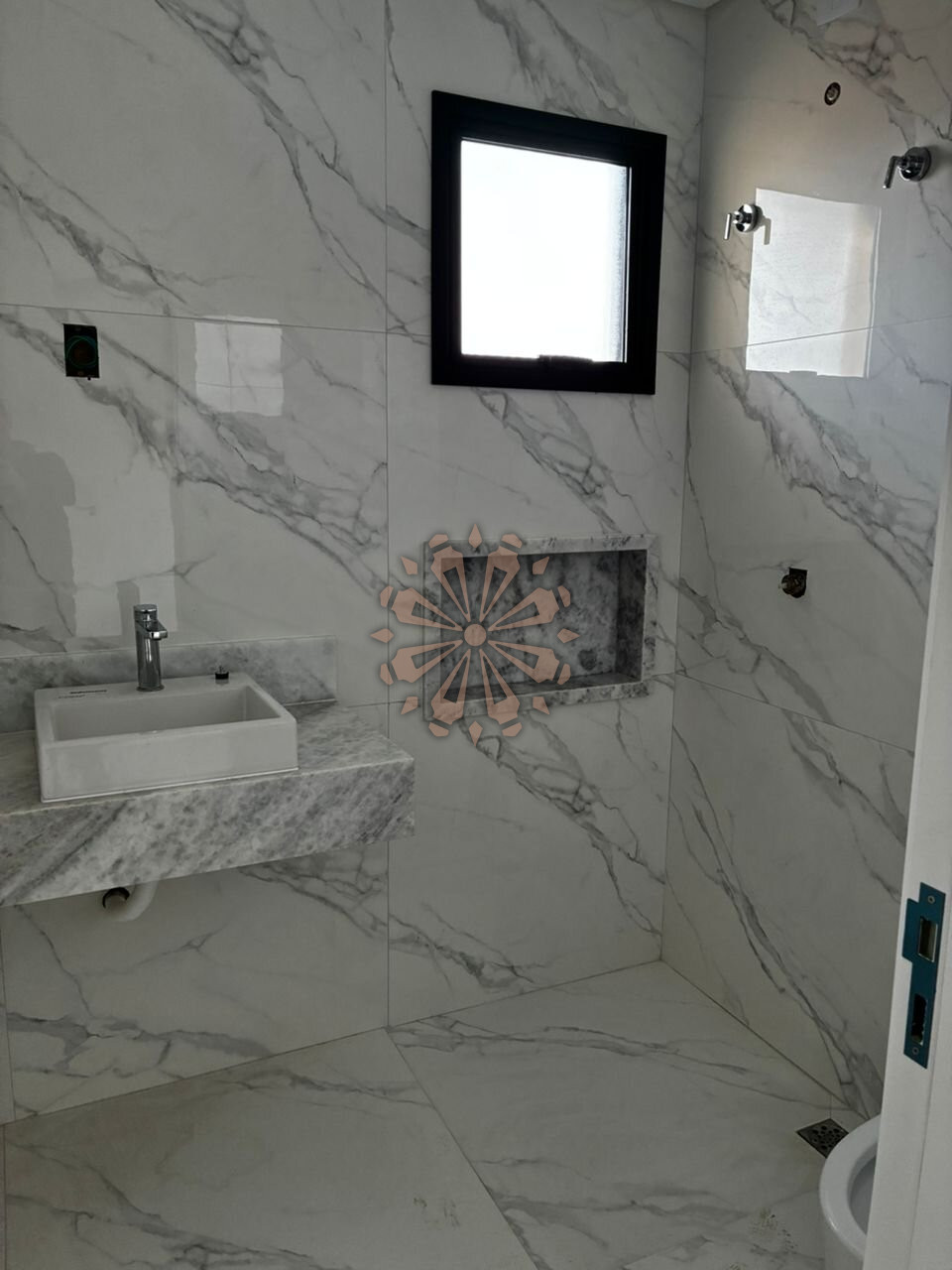 A garagem comporta 2 veículos, e o acabamento é de alto padrão, com esquadrias em alumínio, persianas automatizadas e infraestrutura para ar-condicionado em todos os ambientes.