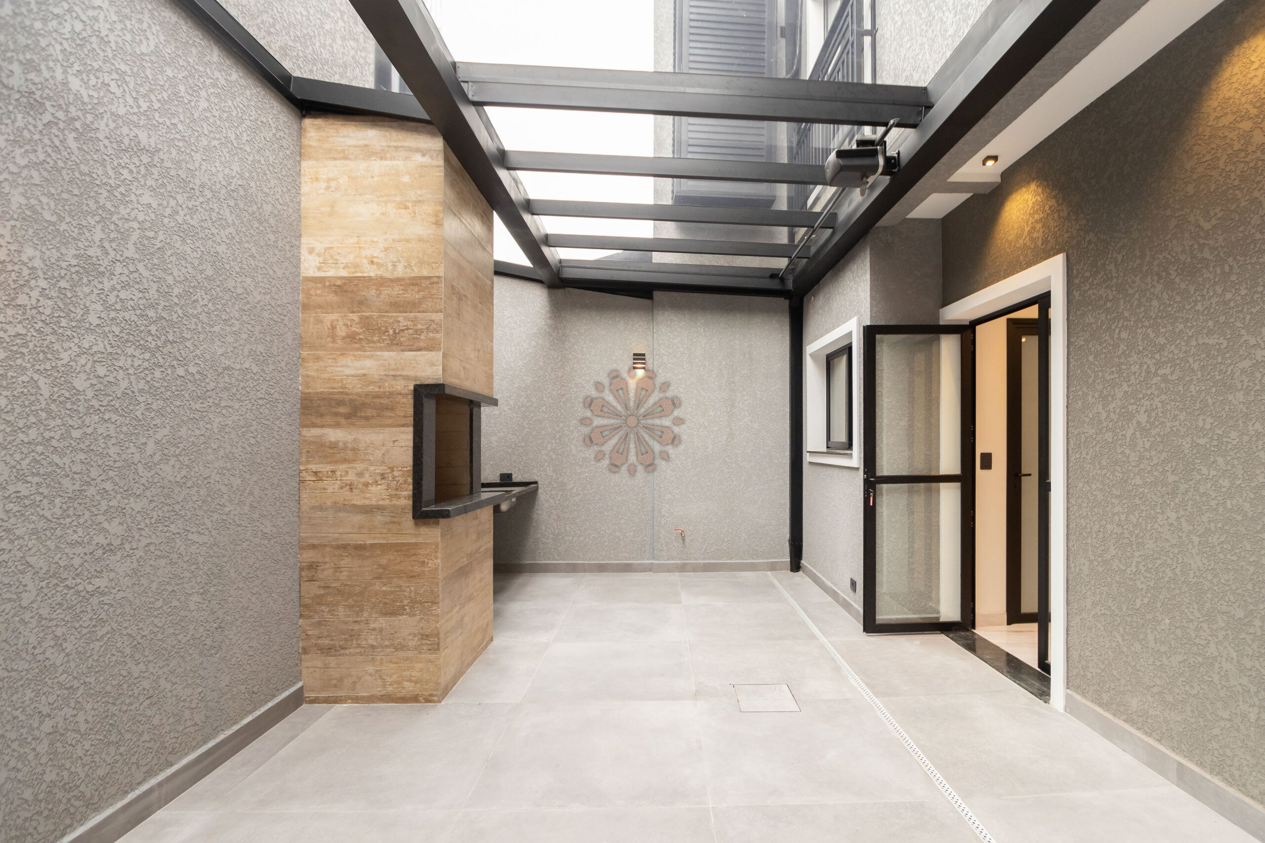 Área gourmet com churrasqueira e teto retrátil, além de sacada na suíte máster.
