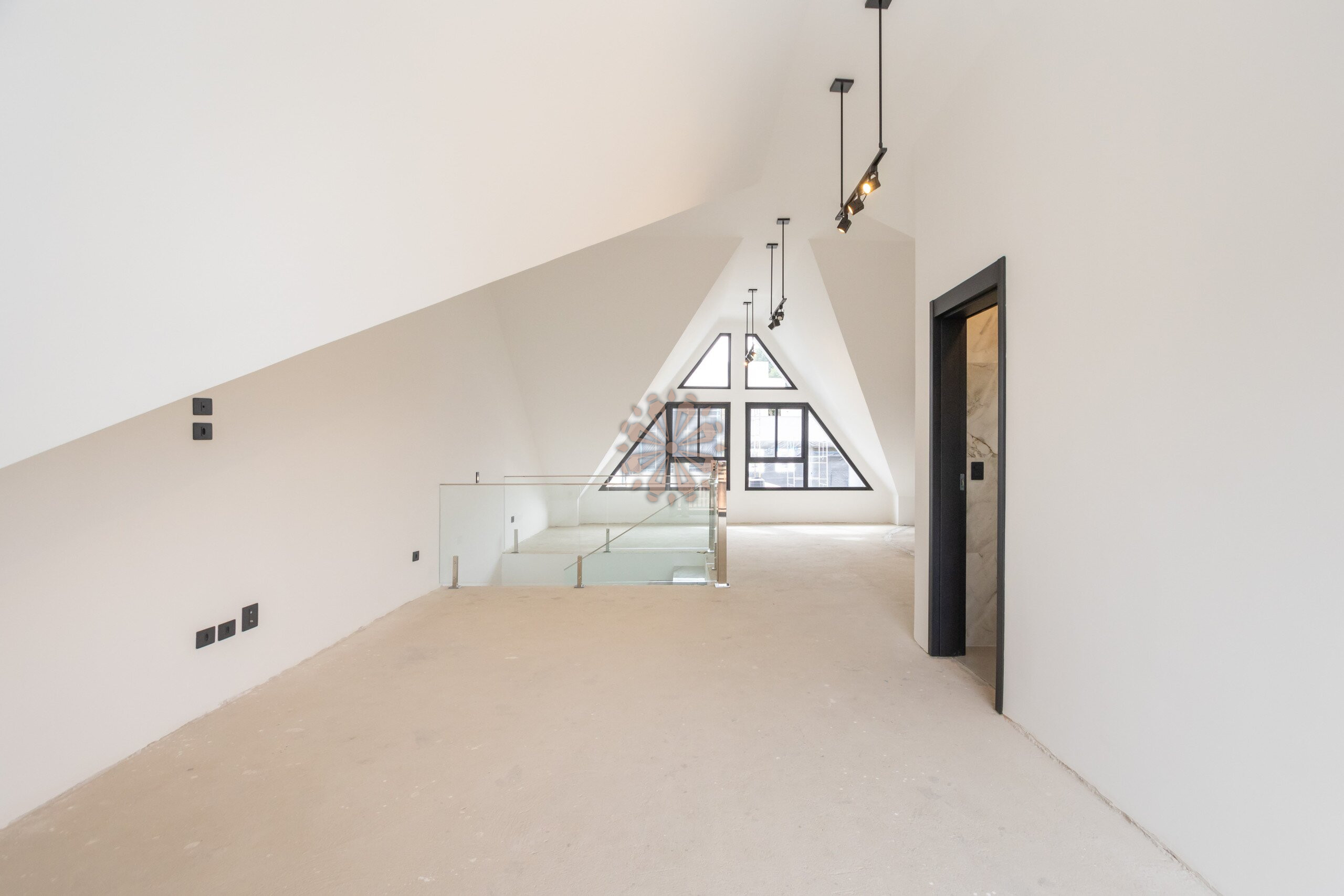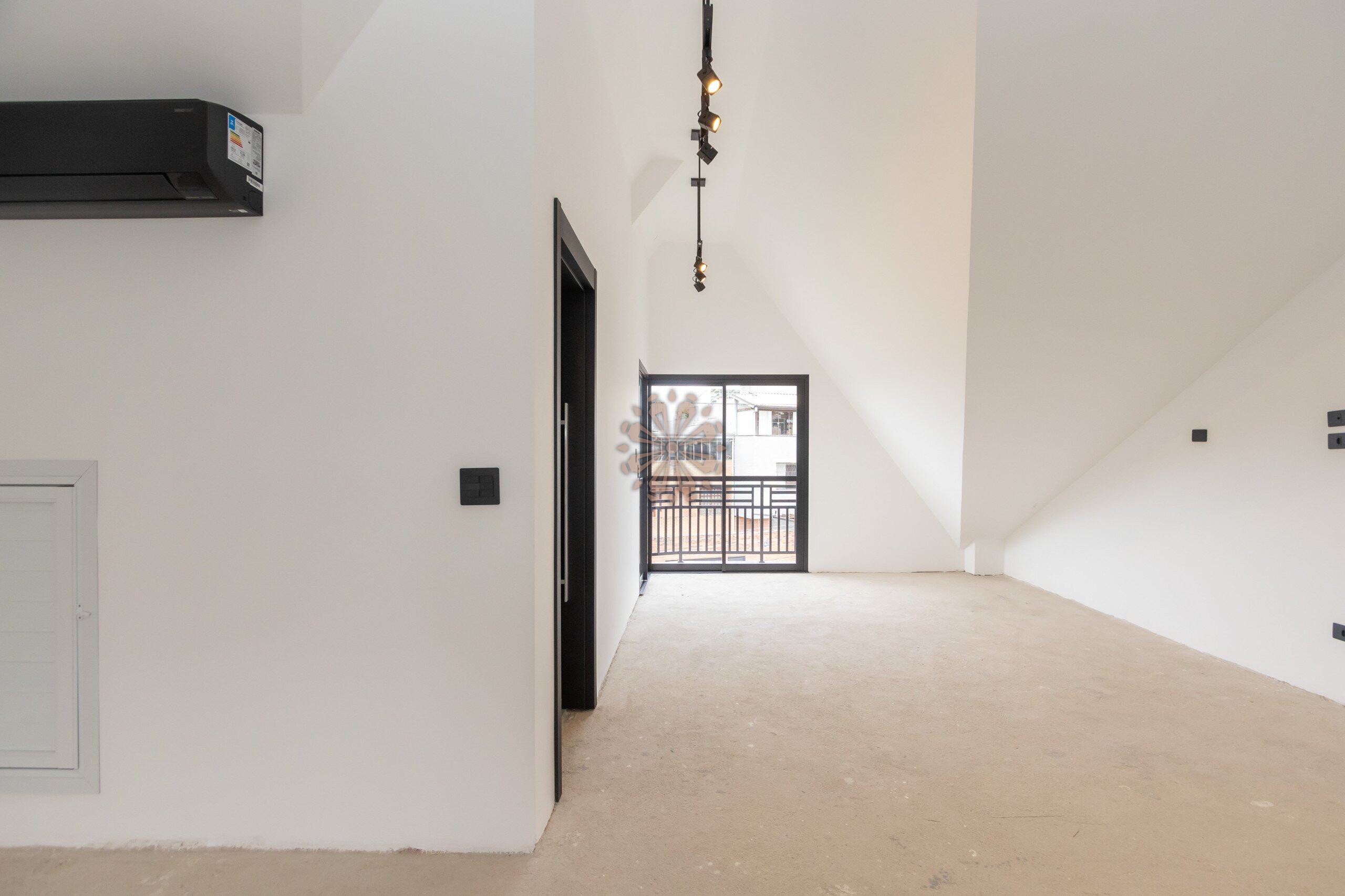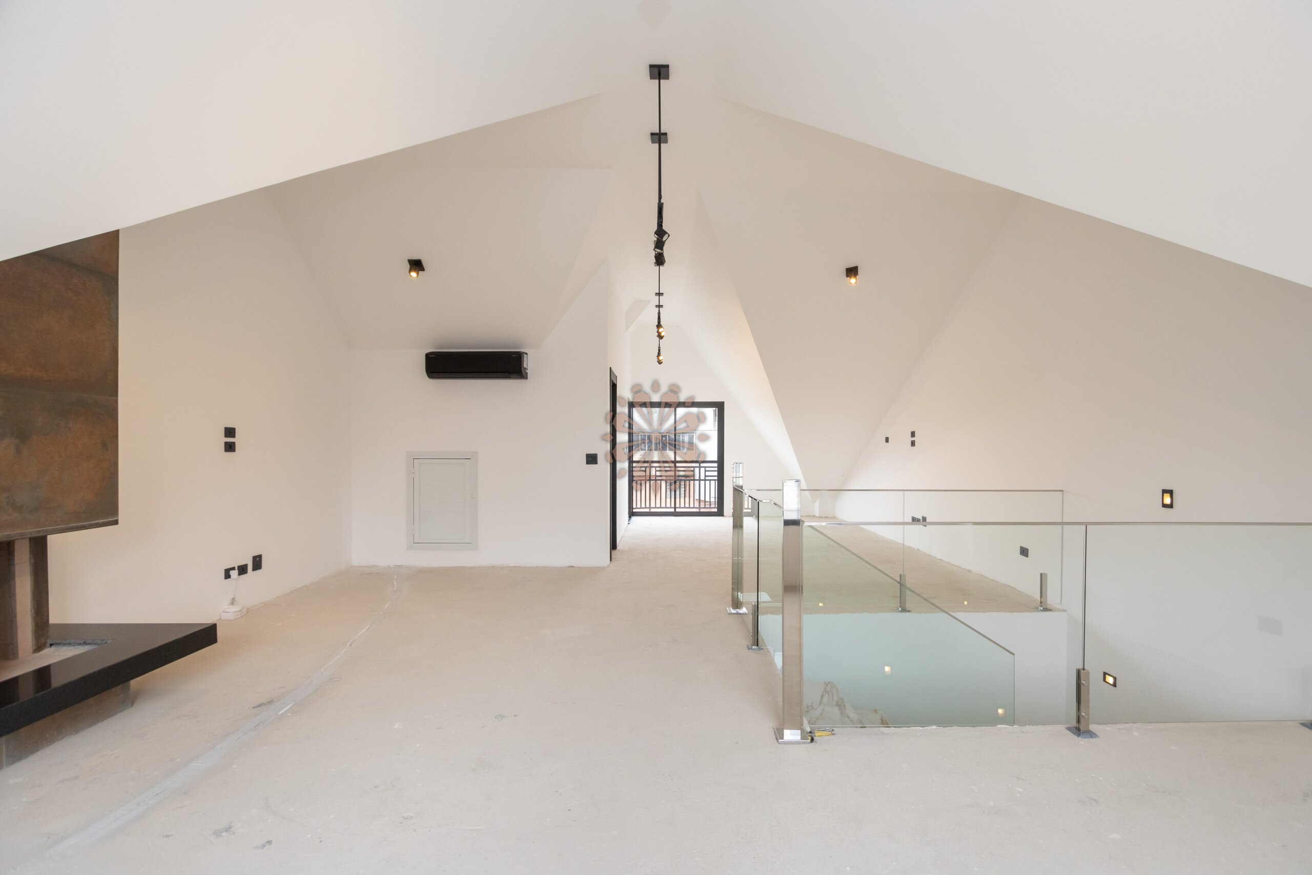 Ático com sacada, lareira e ar-condicionado.