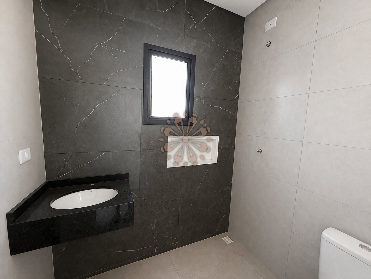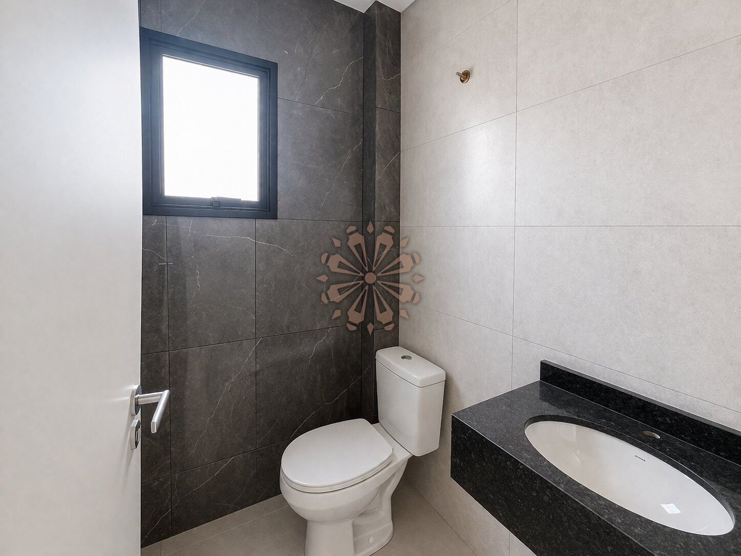 O acabamento é um dos grandes diferenciais, com piso em porcelanato, detalhes em mármore e acabamento em gesso, garantindo sofisticação e durabilidade.