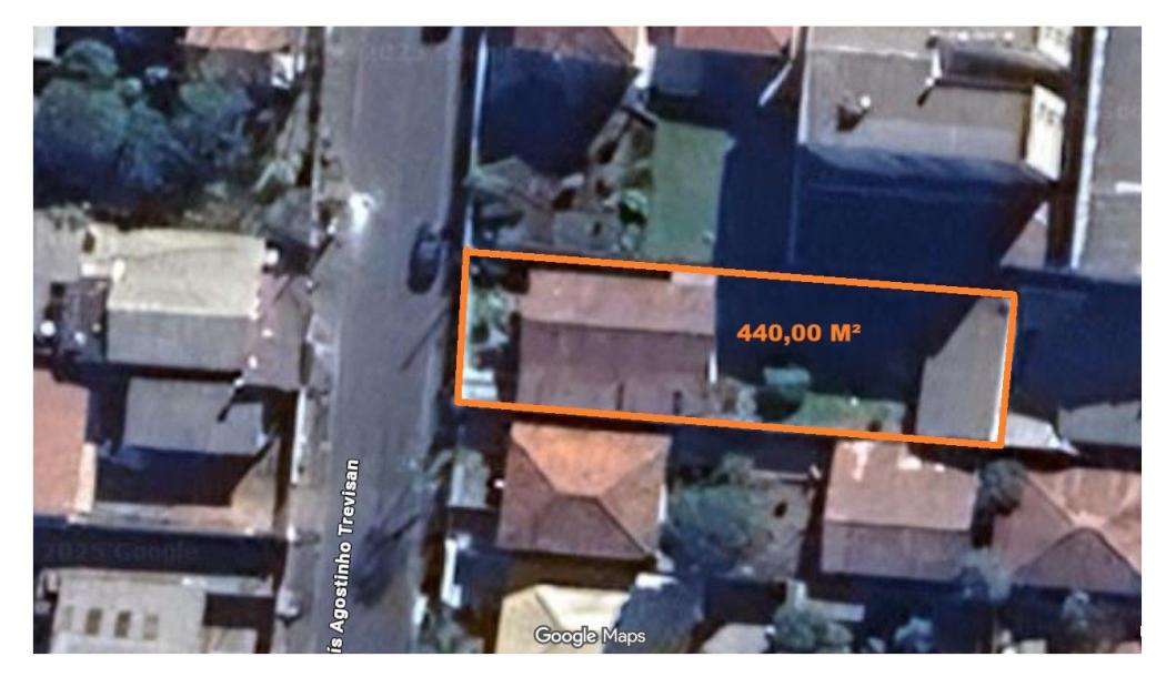 Medidas: 11,00m de frente por 40,00 m em ambos os lados e fundos com 11,00 m.